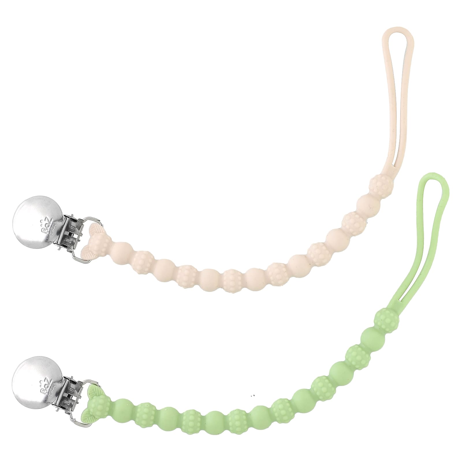 Силиконовый шнурок легко прикрепить практически к любой соске, прорезывателю для зубов или маленькой игрушке. Держатель RaZzies имеет идеальную длину, чтобы дать ребенку возможность двигаться, не вынимая соску. Держатель RaZzies работает практически с любой соской, прорезывателем для зубов или игрушкой. Идеально продуманная застежка бережно относится к одежде, но при этом достаточно прочная, чтобы ребенок не сорвал ее. Застежка из нержавеющей стали не тускнеет, как и другие. 100% мягкий силикон без бисфенола А обеспечивает безопасность и комфорт вашего малыша.