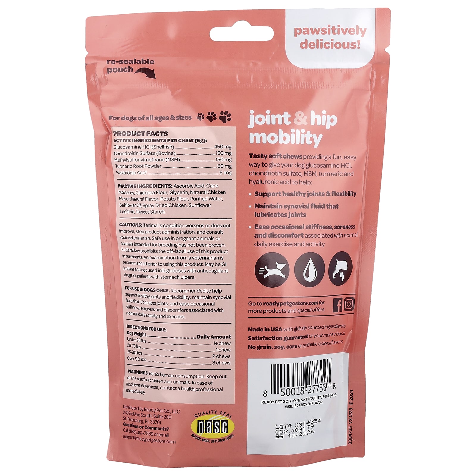 Вкусные мягкие жевательные таблетки - это веселый и простой способ дать вашей собаке глюкозамин гидрохлорид, хондроитинсульфат, МСМ, куркуму и гиалуроновую кислоту, которые помогут: