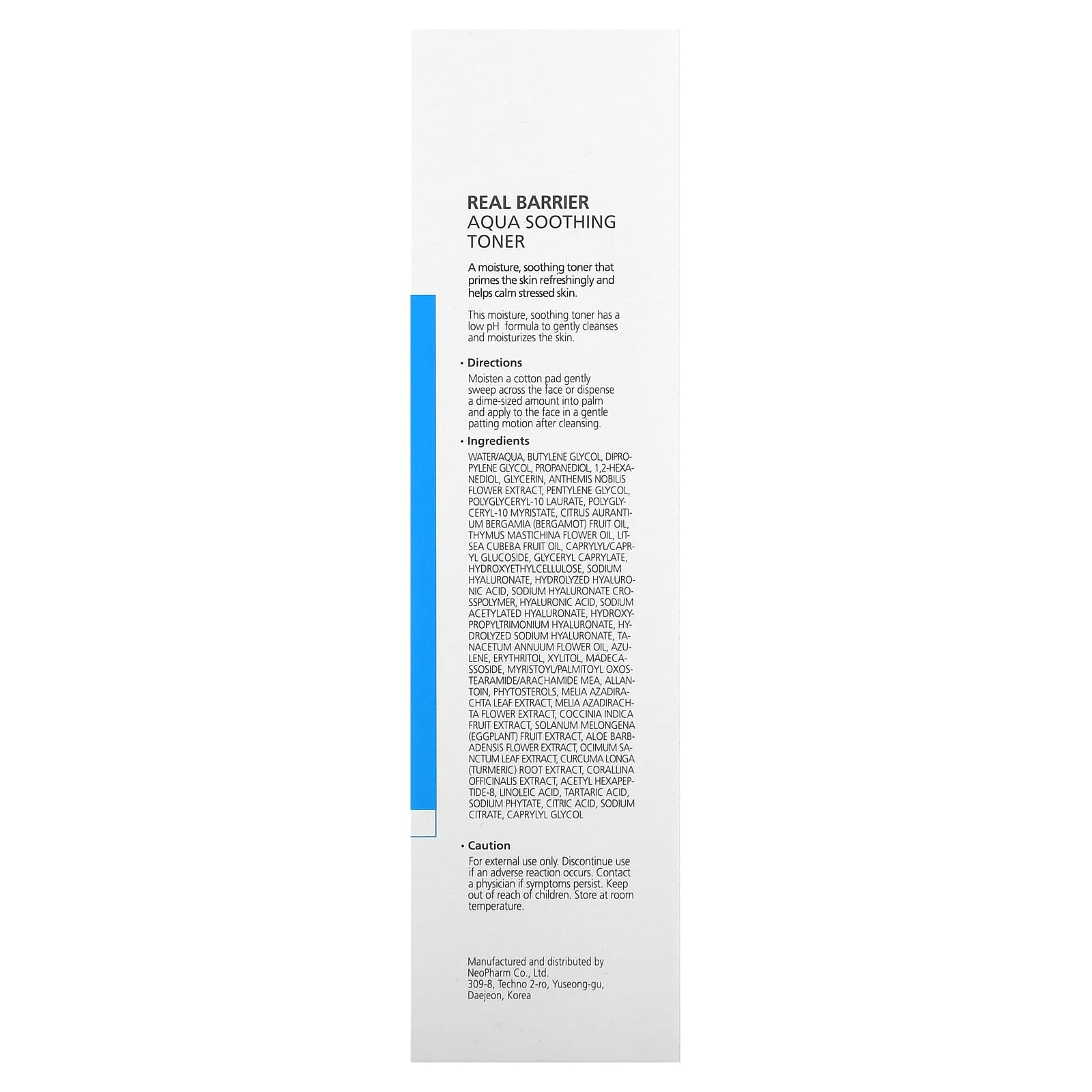 Вода, бутиленгликоль, дипропиленгликоль, пропандиол, 1,2-гександиол, глицерин, экстракт цветков ромашки римской (Anthemis nobilis), пентилен гликоль, полиглицерил-10 лаурат, полиглицерил-10 миристат, масло бергамота (Citrus aurantium bergamia), масло из цветков вилочковой железы (Thymus mastichina), масло плодов литцеи кубебы (Litsea cubeba), каприлил/каприл глюкозид, глицерил каприлат гидроксиэтилцеллюлоза, гиалуронат натрия, гидролизованная гиалуроновая кислота, гиалуронат натрия кроссполимер, гиалуроновая кислота, ацетилированный гиалуронат натрия, гиалуронат гидроксипропилтримония, гидролизованный гиалуронат натрия, масло из цветков голубой пижмы (Tanacetum annuum), азулен, эритритол, ксилитол, мадекассосид, миристоил/пальмитоил оксостеарамид/арахамид МЭА, аллантоин, фитостеролы, экстракт листьев дерева ним (Melia azadirachta), экстракт цветков дерева ним (Melia azadirachta), экстракт плодов кокцинии индийской (Coccina indica), экстракт плодов баклажана (Solanum melongena), экстракт цветков алоэ вера (Aloe barbadensis), экстракт листьев базилика священного (Ocimum sanctum), экстракт корня куркумы (Curcuma longa), экстракт кораллины лекарственной (Corallina officinalis), ацетил гексапептид-8, линолевая кислота, винная кислота, фитат натрия, лимонная кислота, цитрат натрия, каприлилгликоль.