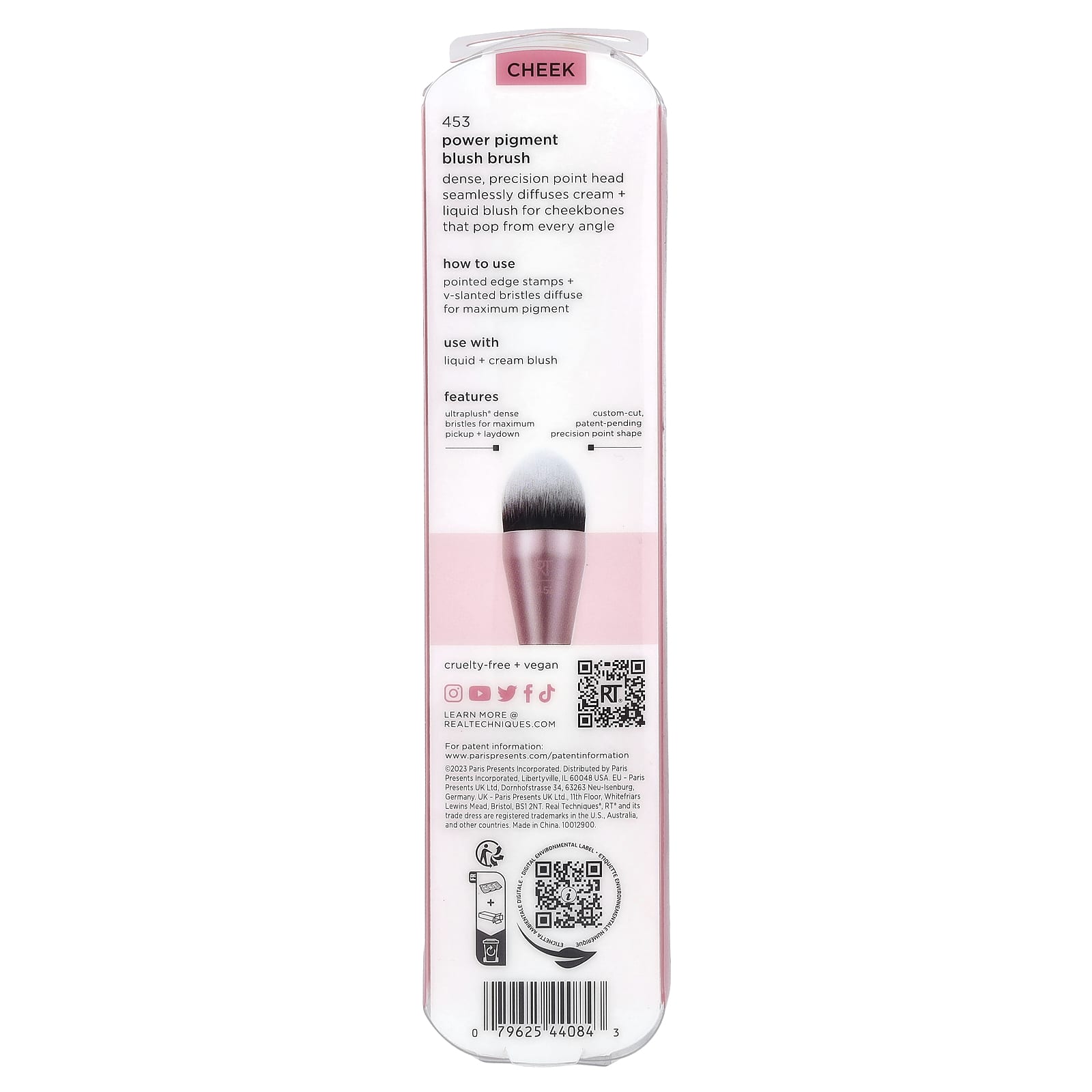 Плотная, точная головка легко наносит крем + жидкие румяна на скулы, которые выделяются со всех сторон.
