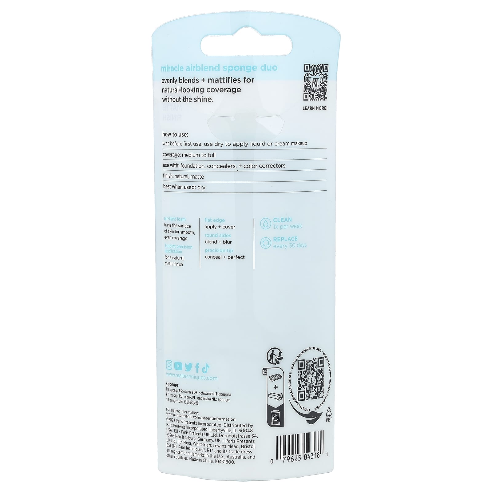 Miracle Airblend Sponge Duo равномерно растушевывает и матирует, обеспечивая естественное покрытие без блеска.