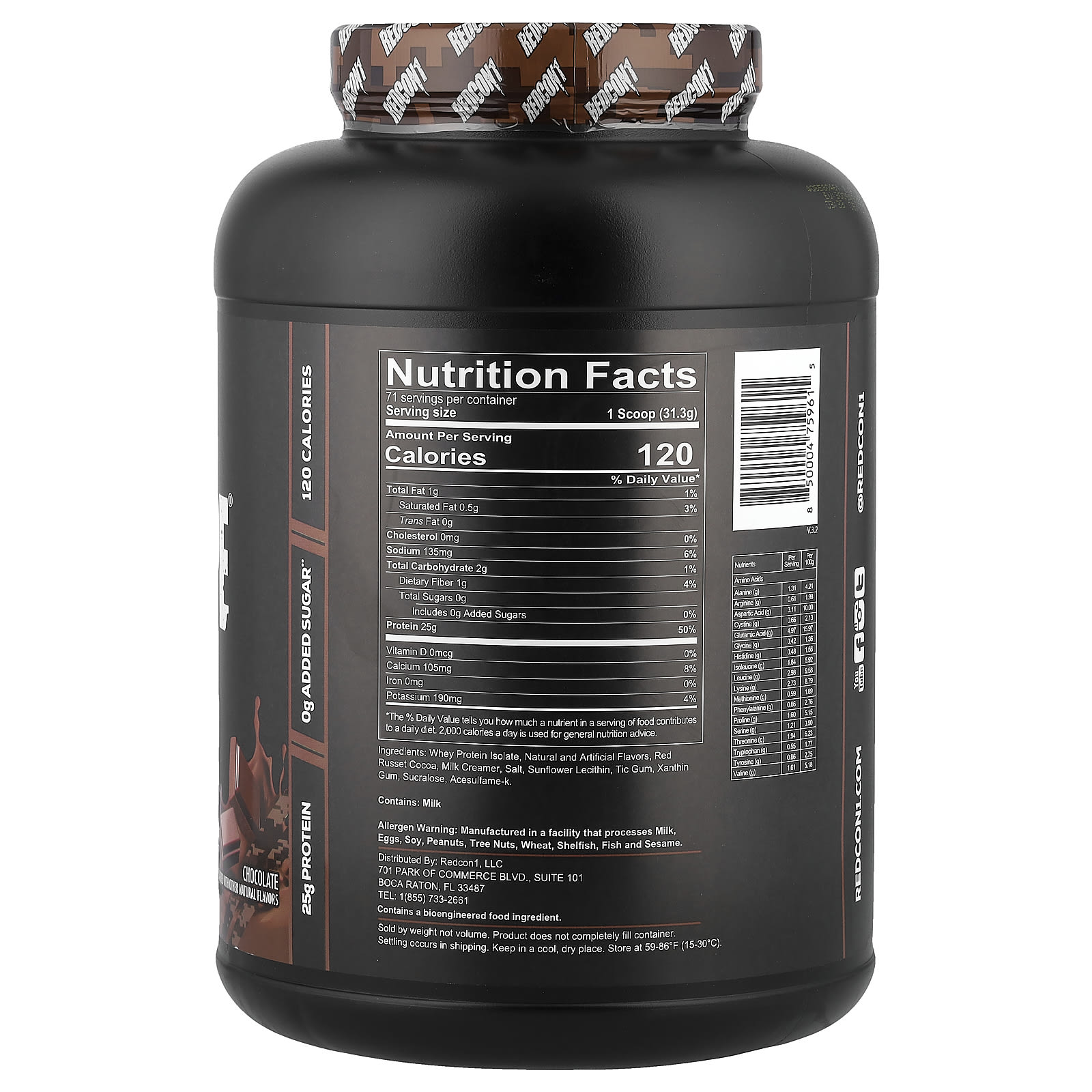 Изолят сывороточного протеина, какао (обработанное щелочью), натуральные ароматизаторы, морская соль, подсолнечный лецитин, ксантановая камедь, целлюлозный гель и/или камедь сукралоза, ацесульфам калия.