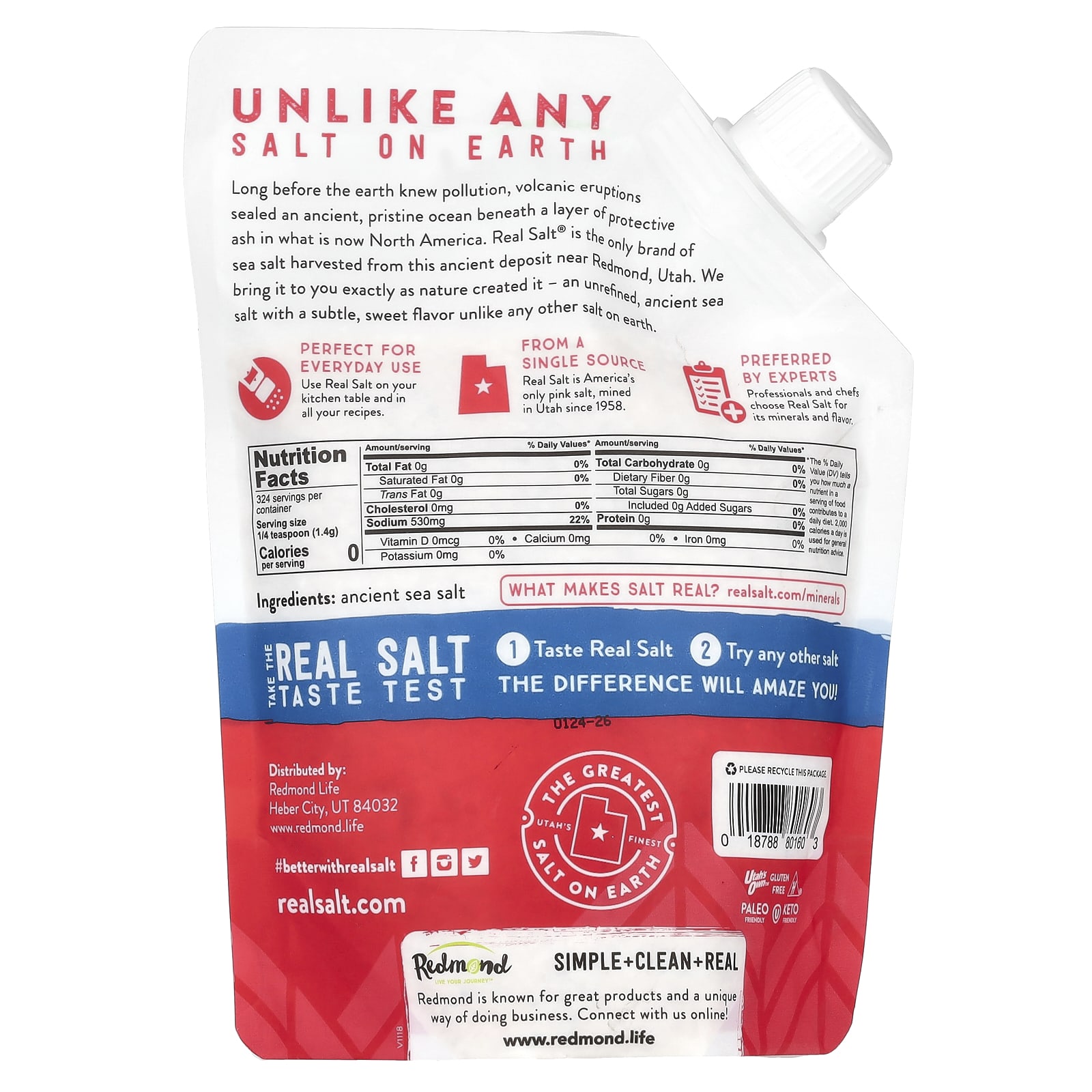 Задолго до того, как Земля узнала о загрязнении, извержения вулканов закрыли древний, нетронутый океан слоем защитного пепла на территории современной Северной Америки. Real Salt® - единственный бренд морской соли, добываемый на этом древнем месторождении недалеко от Редмонда, штат Юта. Мы доставляем ее вам точно такой, как ее создала природа - нерафинированную древнюю морскую соль с нежным сладким вкусом, не похожую на любую другую соль на земле.