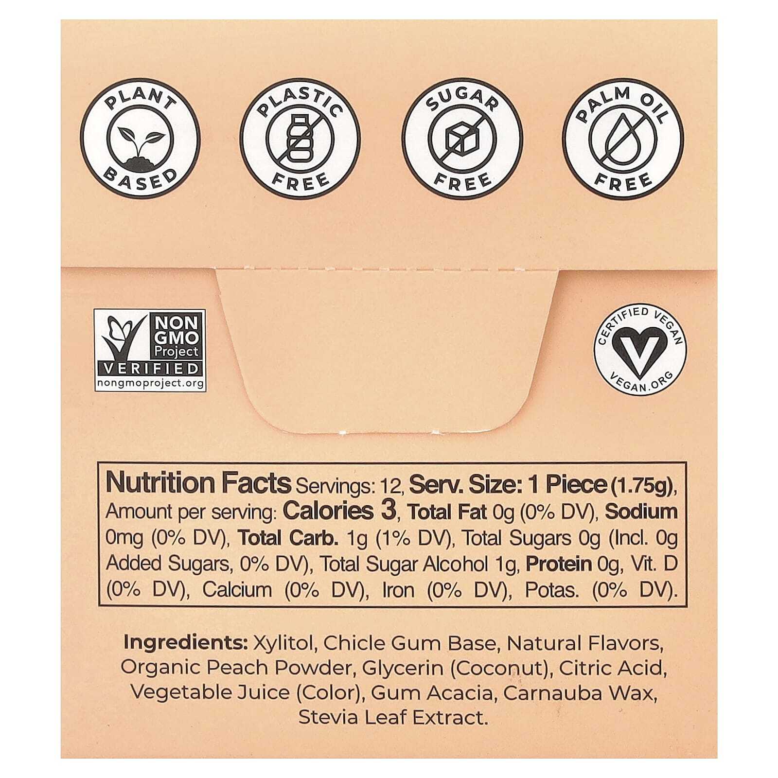 Ксилитол, основа чилийской камеди, натуральные ароматизаторы, порошок из органического персика, глицерин (кокос), лимонная кислота, овощной сок (краситель), аравийская камедь, карнаубский воск, экстракт листьев стевии.