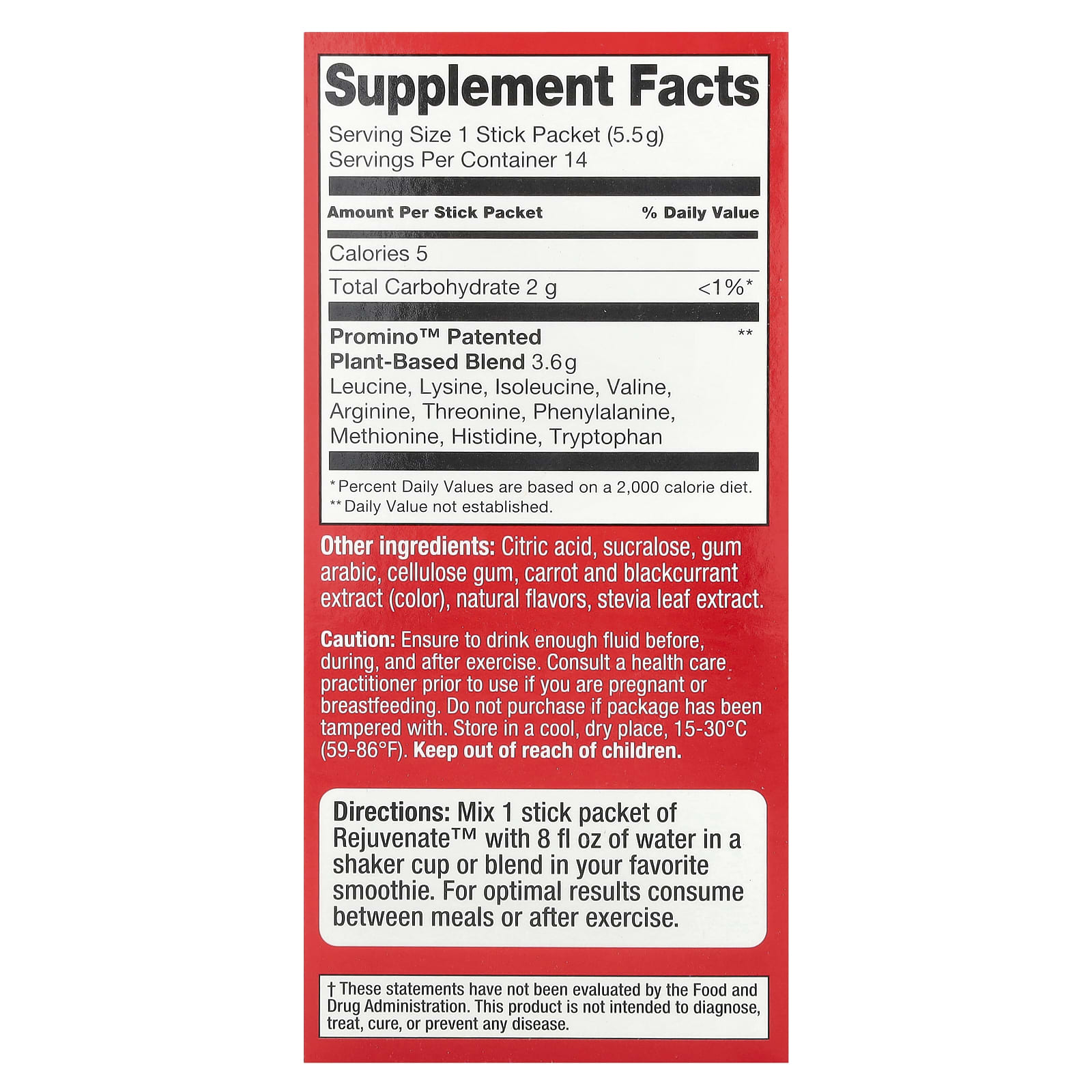 | Запатентованная смесь на растительной основе Rejuvenate ™ Лейцин, лизин, изолейцин, валин, аргинин, треонин, фенилаланин, метионин, гистидин, триптофан | 3,6 г | ** |