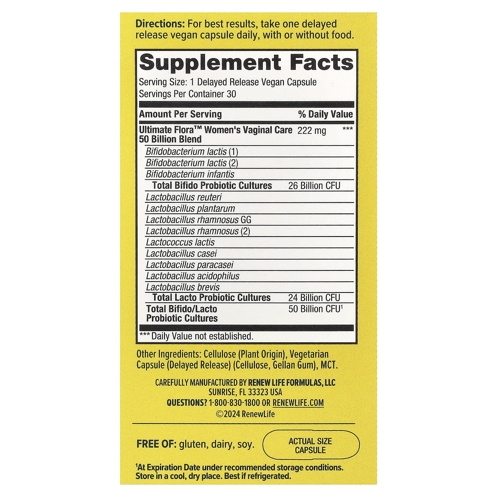 Пробиотик для влагалища для женщин Ultimate Flora™ 50 млрд — это формула повышенной силы действия, содержащая 12 специально отобранных штаммов, включая большое количество лактобактерий, которая была разработана для поддержания здорового баланса дрожжей и поддержания здоровья влагалища и мочевыводящих путей.
