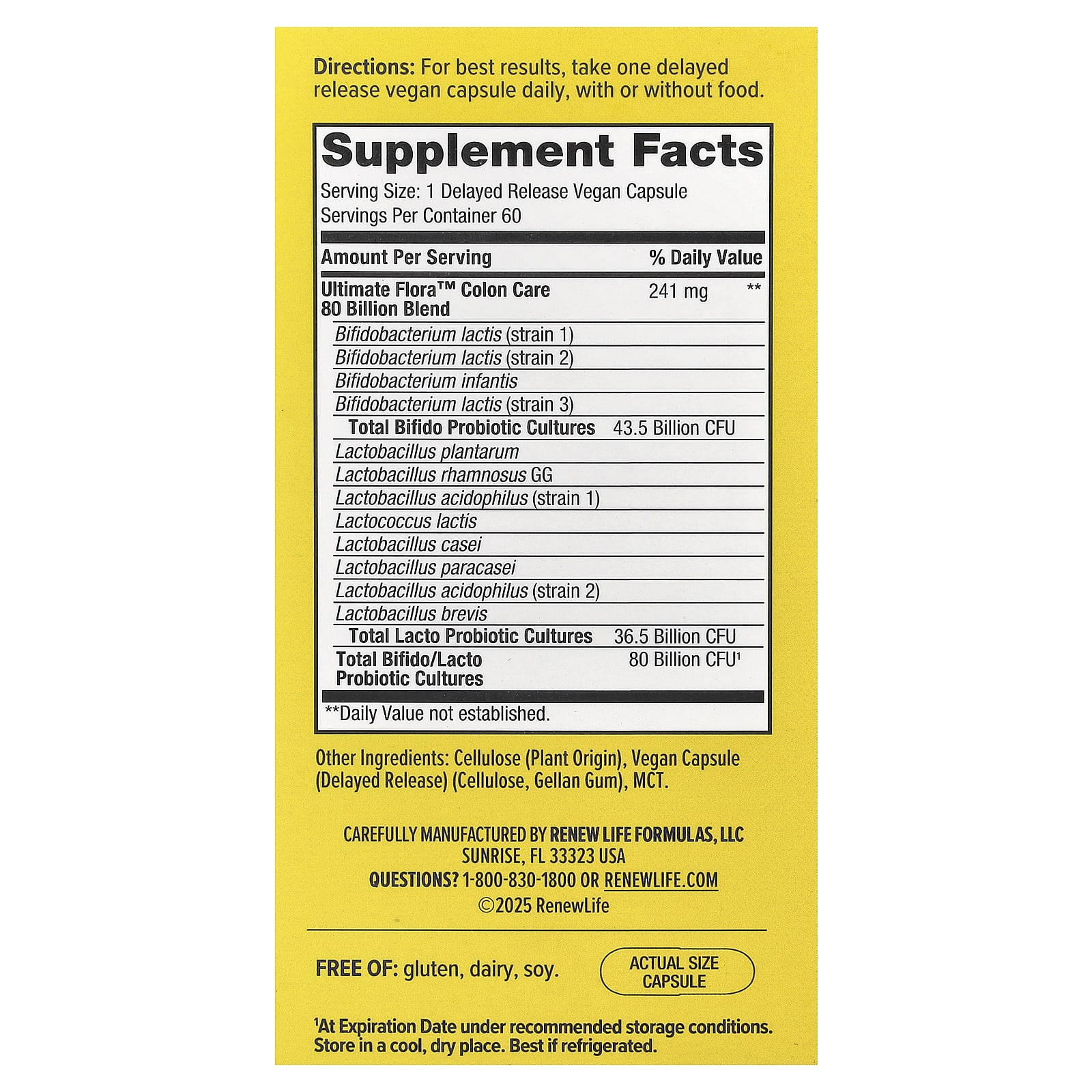 Пробиотик для ухода за кишечником для поддержания здоровья кишечника* Пробиотик для ухода за кишечником Ultimate Flora™ 80 млрд — это формула повышенной силы действия, содержащая 12 специально отобранных штаммов, разработанная для восстановления баланса пищеварительной системы, помогающего облегчить эпизодические запоры и поддержать здоровье пищеварительной системы. Она содержит больше бифидобактерий, чем лактобактерий, поэтому обеспечивает больше полезных бактерий в толстой кишке.