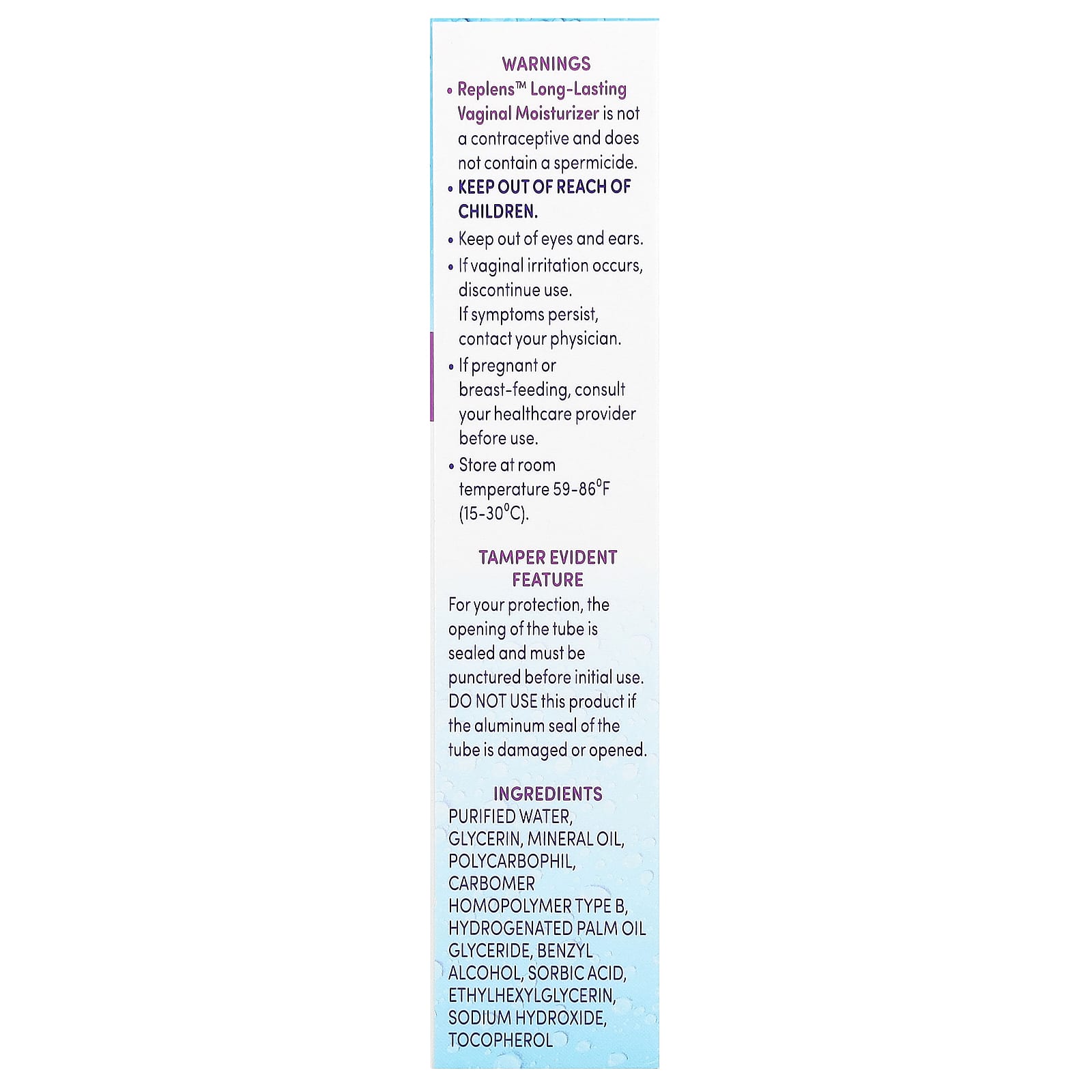 - Увлажняющий крем для влагалища Replens™ с длительным эффектом не является противозачаточным средством и не содержит спермицидов.