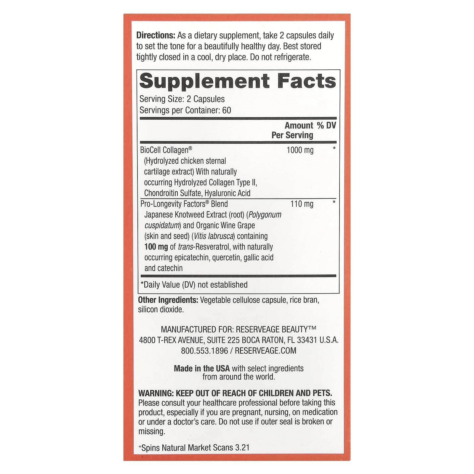 Reserveage Beauty, Collagen Booster ™ с гиалуроновой кислотой и ресвератролом, 120 капсул