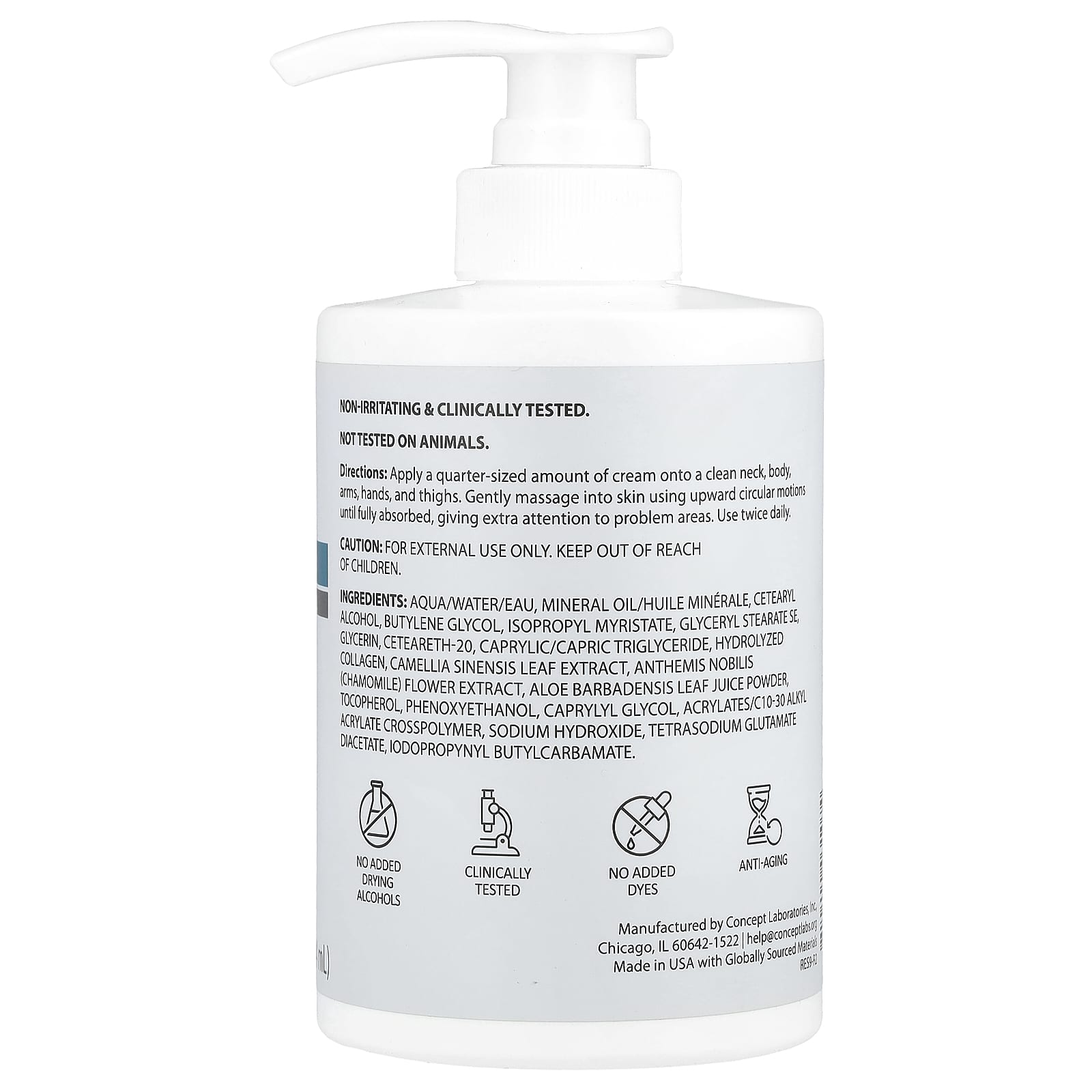 Вода, минерального масла, цетеариловый спирт, бутиленгликоль, изопропил миристат, глицерил стеарат эмульгирующий, глицерин, цетеарет-20, каприловый/каприновый триглицерид, гидролизованный коллаген, экстракт листьев зеленого чая (Camellia sinensis), экстракт цветков ромашки (Anthemis nobilis), порошок из сока листьев алоэ вера (Aloe barbadensis), токоферол, феноксиэтанол, каприлилгликоль, акрилат/c10-30 алкил акрилат кроссполимер, гидроксид натрия, диацетат глутамата тетранатрия, йодопропинил бутилкарбамат.