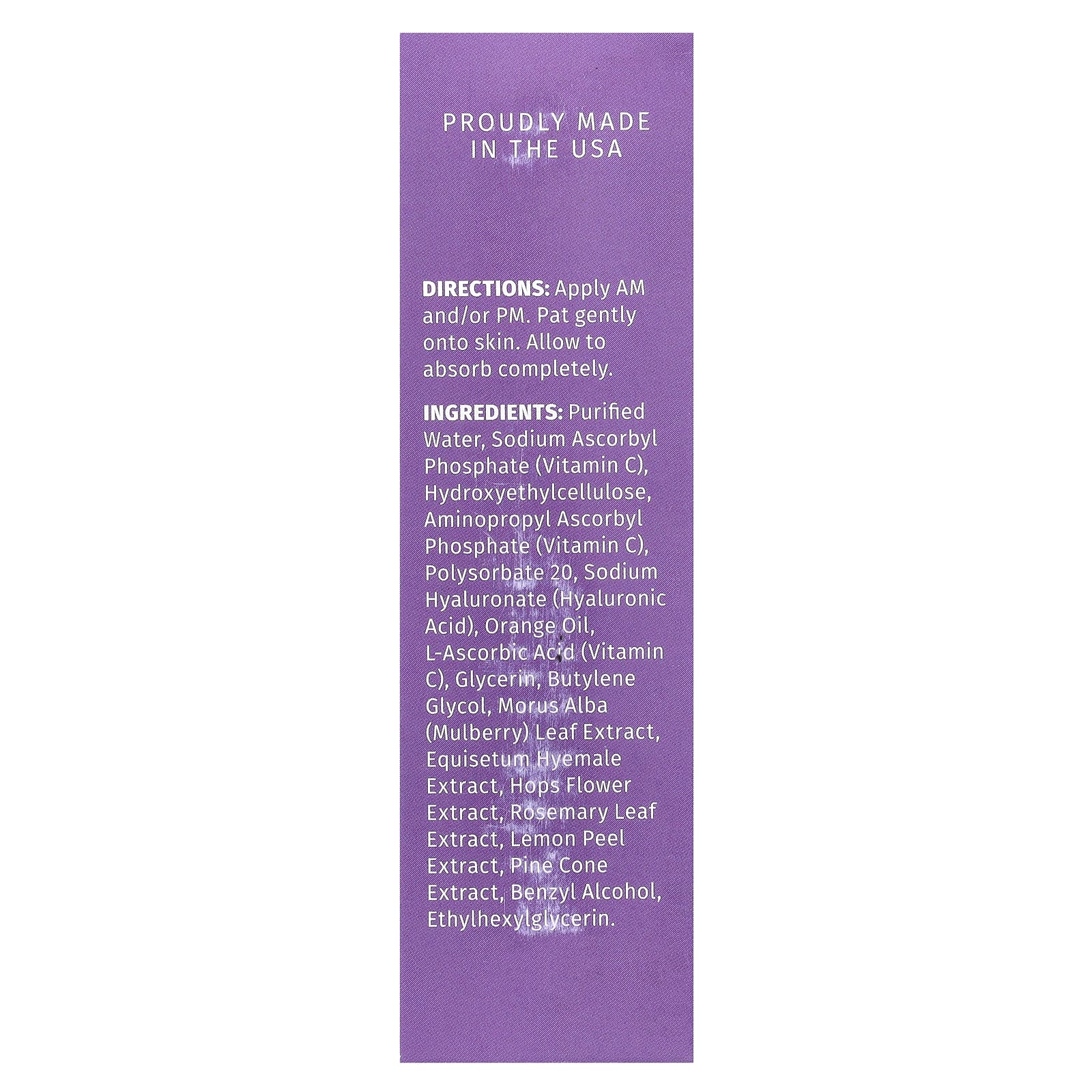 Очищенная вода, аскорбил фосфат натрия (витамин C), гидроксиэтилцеллюлоза, аминопропил аскорбил фосфат (витамин C), полисорбат 20, гиалуронат натрия (гиалуроновая кислота), апельсинового масла, L-аскорбиновая кислота (витамин C), глицерин, бутиленгликоль, экстракт листьев шелковицы (Morus alba), экстракт хвоща (Equisetum hyemale), экстракт цветков хмеля, экстракт листьев розмарина, экстракт цедры лимона, экстракт сосновой шишки, бензиловый спирт, этилгексилглицерин.