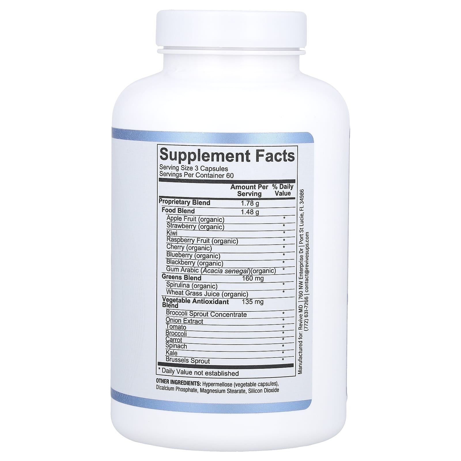 Каждая порция Revive Supplements Daily Greens содержит 3 г зелени, богатой питательными веществами, включая ростки пшеницы, спирулину и хлореллу, которые богаты витаминами, минералами и антиоксидантами. Эта добавка также обогащена пищеварительными ферментами, пребиотиками и пробиотиками, которые помогают поддерживать здоровое пищеварение и здоровье кишечника.