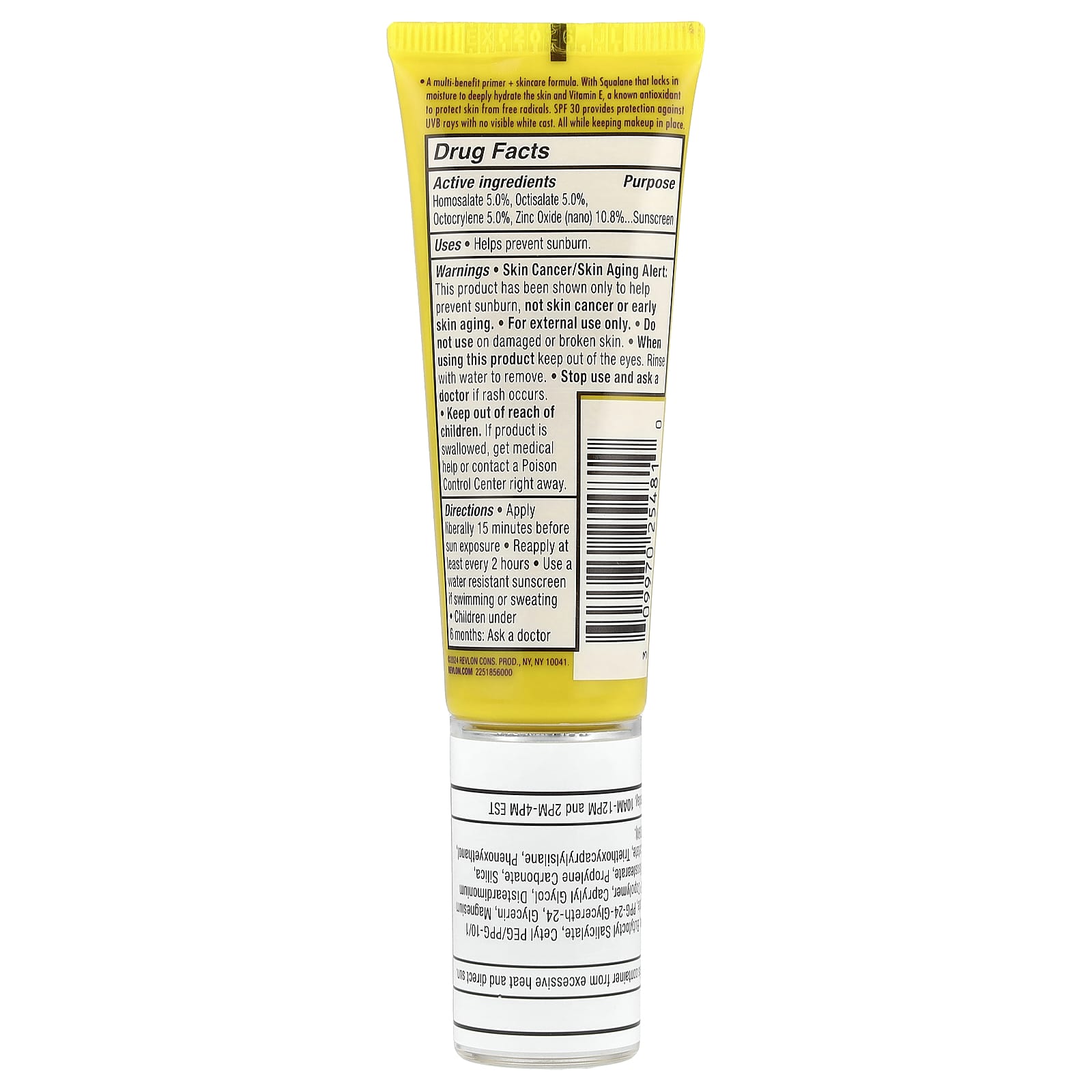 Многофункциональный праймер и средство для ухода за кожей. Содержит сквалан, который удерживает влагу, глубоко увлажняя кожу, и витамин Е, известный антиоксидант, защищающий кожу от свободных радикалов. SPF 30 обеспечивает защиту от UVB-лучей без видимого белого оттенка. При этом макияж сохраняется.