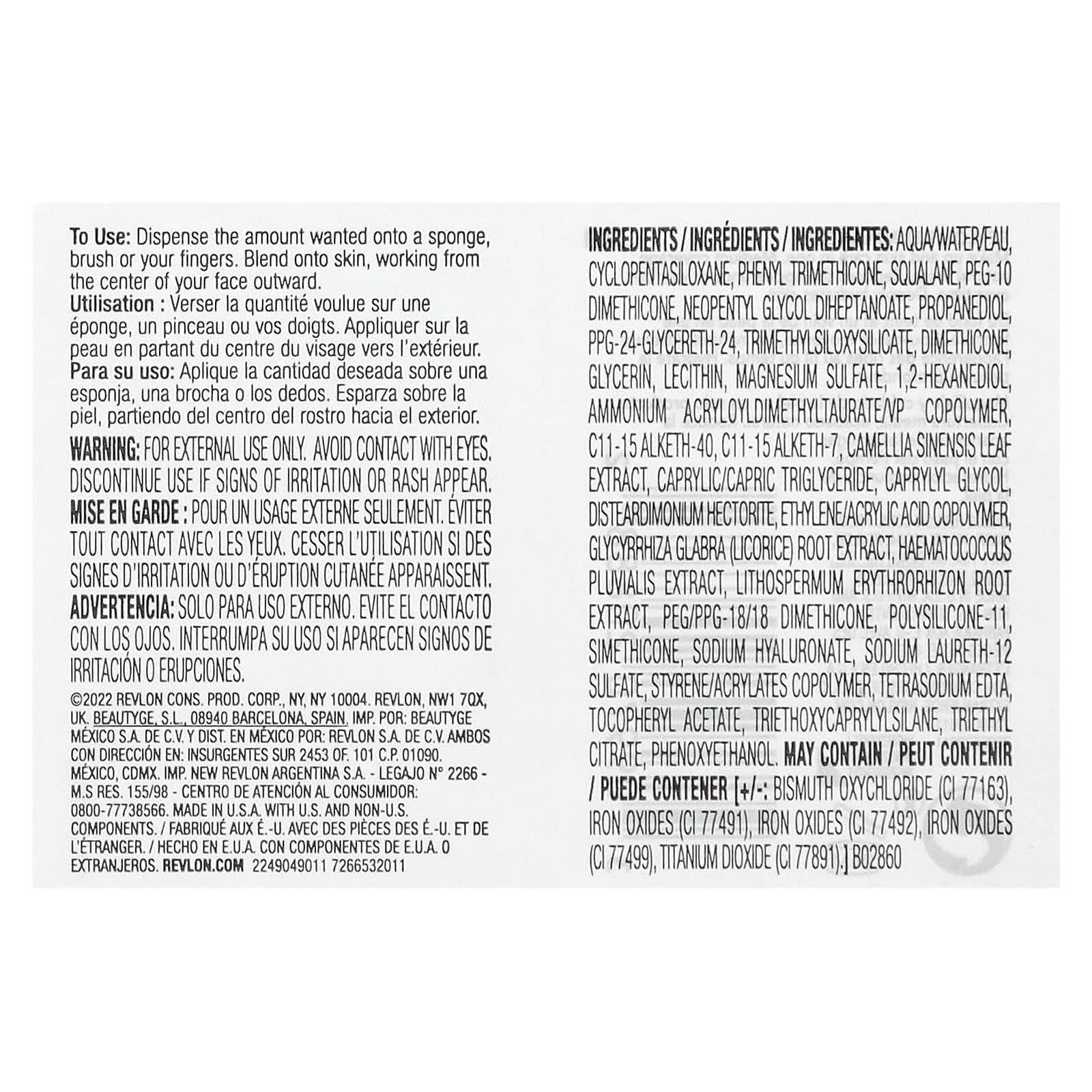 Вода, циклопентасилоксан, фенилтриметикон, сквалан, ПЭГ-10 диметикон, неопентилгликоль дигептаноат, пропандиол, ППГ-24-глицерет-24, триметилсилоксисиликат, диметикон, глицерин, лецитин, сульфат магния, 1,2-гександиол, аммоний акрилоилдиметилтаурат/ВП сополимер, c11-15 alketh-40, c11-15 alketh-7, экстракт листьев зеленого чая (Camellia sinensis), каприловый/каприновый триглицерид, каприлилгликоль, дистеардимония гекторит, сополимер этилена и акриловой кислоты, экстракт корня солодки (Glycyrrhiza glabra), экстракт гематококка дождевого (Haematococcus pluvialis), экстракт корня воробейника (Lithospermum erythrorhizon), ПЭГ/ППГ-18/18 диметикон, полисиликон-11, симетикон, гиалуронат натрия, натрия лаурет-12 сульфат, сополимер стирол/акрилаты, тетранатрия ЭДТК, токоферилацетат, триэтоксикаприлилсилан, триэтилцитрат, феноксиэтанол. Может содержать [+ / -: оксихлорид висмута (CI 77163), оксиды железа (CI 77491), оксиды железа (CI 77492), оксиды железа (CI 77499), диоксид титана (CI 77891).