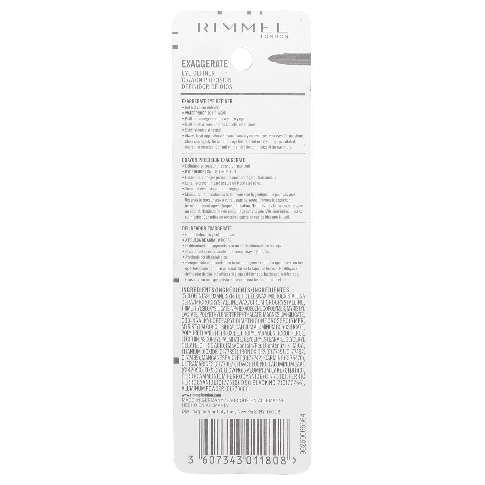Циклопентасилоксан, синтетический воск, микрокристаллическая кора муравьиного дерева, триметилсилоксисиликат, ВП/гексадецен сополимер, миристил лактат, полиэтилентерефталат, силикат магния, c30-45алкилцетеарилдиметикон кроссполимер миристиловый спирт, диоксид кремния, кальций алюминий боросиликат, полиуретан-11, оксид олова, пропилпарабен, токоферол, лецитин, аскорбил пальмитат, глицерил стеарат, глицерил олеат, лимонная кислота, [может содержать/+/-: слюду, диоксид титана (CI 77891), оксиды железа (CI 77491, CI 77492, CI 77499), краситель темно-фиолетовый (CI 77742), кармин (CI 75470), ультрамарины (CI 77007), краситель синий FD&C 1 алюминиевый лак (CI42090), FD & c, желтый 5 алюминиевый лак (CI19140), железо-аммоний ферроцианид (CI77510), берлинскую лазурь (CI77510), краситель черный 2 D&C (CI77266), алюминиевый порошок (CI 77000)].