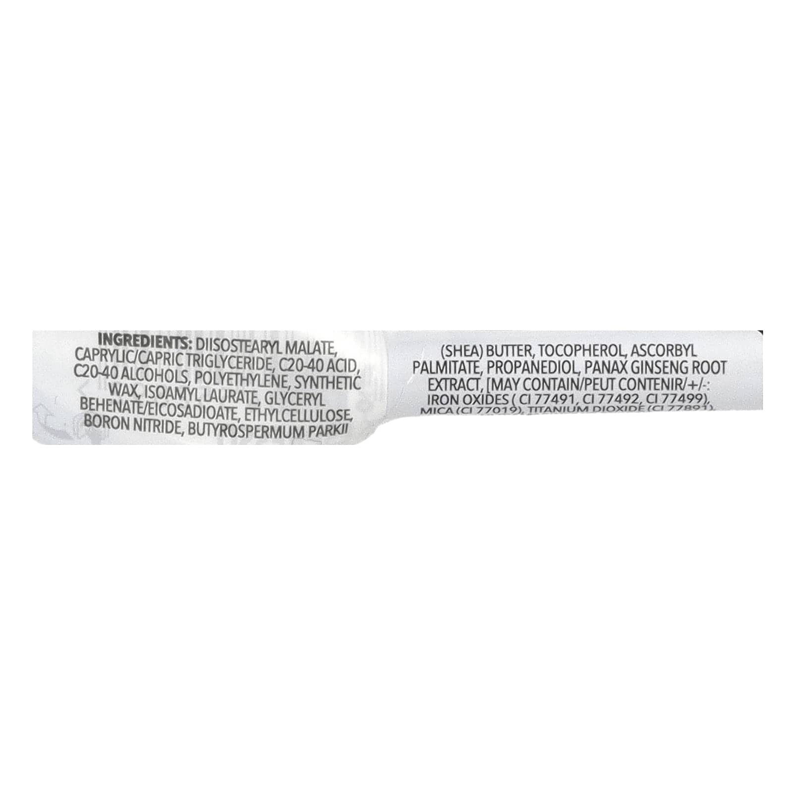 Диизостеарил малат, кислота c20-40, каприловый/каприновый триглицерид, спирты c20-40, слюда, синтетический воск, изоамил лаурат, глицерил бегенат/эйкозадиоат, этилцеллюлоза, нитрид бора, масло ши (Butyrospermum parkii), токоферол, аскорбил пальмитат, пропандиол, [может содержать оксиды железа (CI 77491, CI 77492, CI 77499), диоксид титана (CI 77891)].