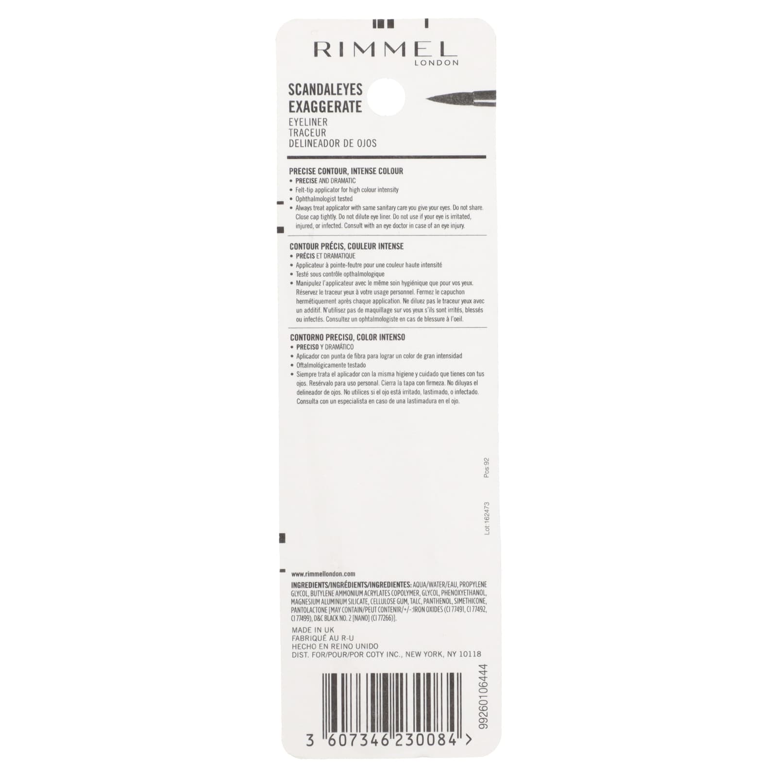 Подводка для глаз Rimmel LondonScandaleyes Exuggerate — это высокопигментированная жидкая подводка для глаз, которая обеспечивает стойкий насыщенный черный цвет. Используйте интенсивный цвет для создания статусного образа или классического кошачьего укладки, который держится до 16 часов. Мягкая формула цвета легко наносится с помощью простого в использовании аппликатора для макияжа, который обеспечивает максимальный контроль и создания точного макияжа глаз. Она не размазывается, не отслаивается и не растекается.