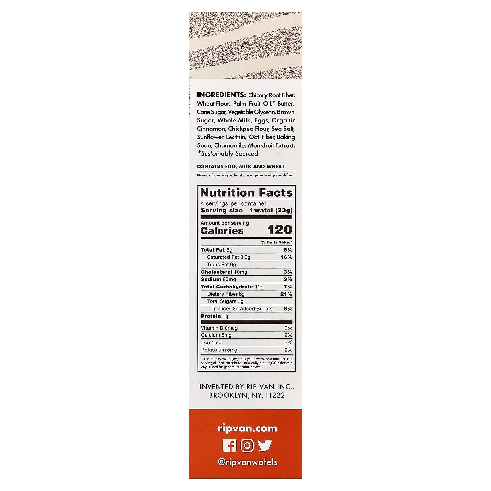При создании Rip Van Wafels мы стремились подарить американцам уникальный, вкусный и безупречный снек. Наш уже третье по счету обновленная голландская действующая рецептура содержит всего 3 грамма сахара. Это содержит менее 1/4 сахара* любимого печенья американцев и в 6 раз больше клетчатки! А теперь побалуйте себя без угрызений совести!