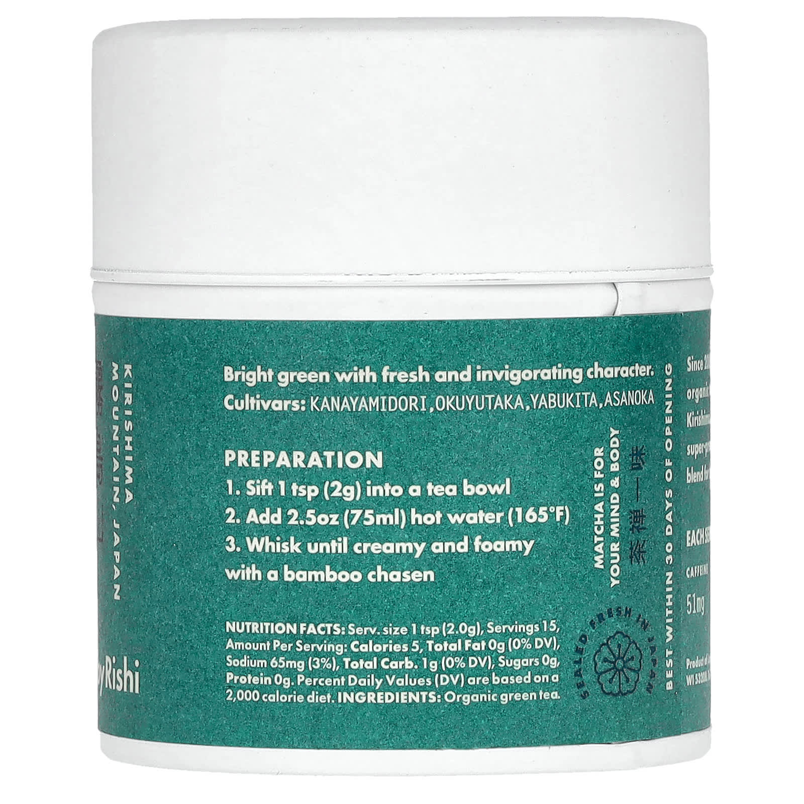 С 2006 года компания Rishi сотрудничает с фермерами, которые являются пионерами в области производства органического чая из японского вулканического региона Кирисима. Таким образом мы получаем эксклюзивные сорта органического матча суперпремиального качества, которые мы смешиваем для поддержания баланса и энергии.