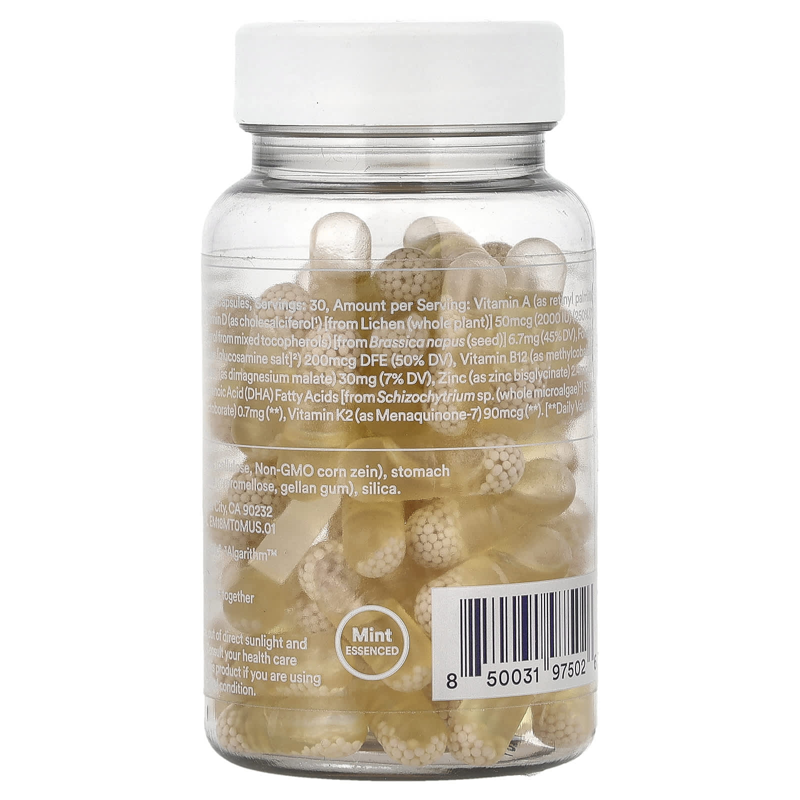 Витамин K2 без сои и ДГК из омега-3 из микроводорослей поддерживают здоровье сердца.