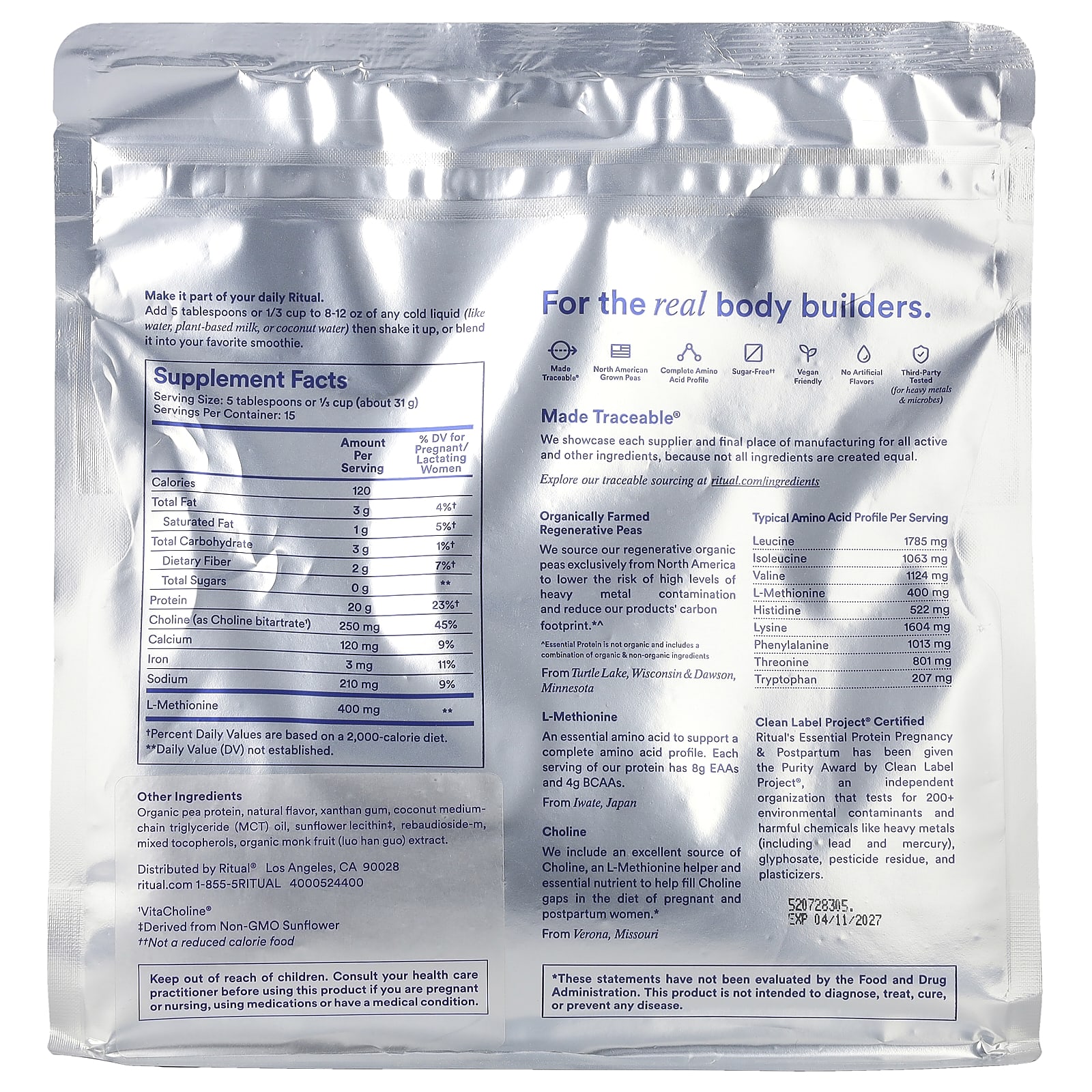 Незаменимый протеин для беременности и послеродовой период от Ritual получил награду за чистоту от Clean Label Project®, независимой организации, которая проверяет продукт на наличие более 200 загрязняющих веществ и вредных химических веществ, таких как тяжелые металлы (включая свинец и ртуть), глифосат, остатки пестицидов и пластификаторы.