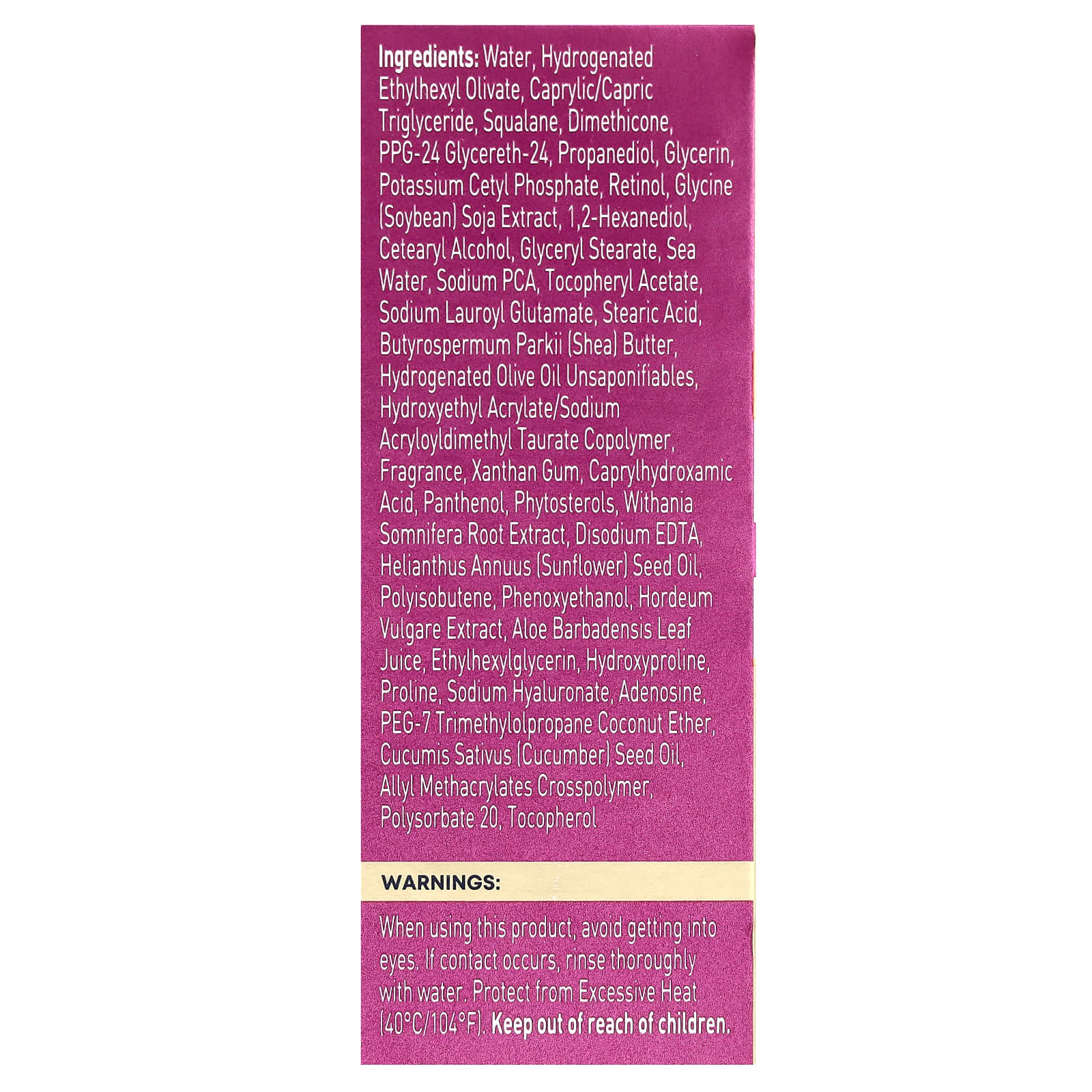 Water_%#tarгet#%, гидрогенизированный этилгексил оливат, каприловый/каприновый триглицерид, сквалан, диметикон, ППГ-24-глицерет-24, пропандиол, глицерин, цетил фосфат калия, ретинол, gлицин (соевый) экстракт сои, 1–2 гександиола, цетеариловый спирт, глицерил стеарат, морская вода, pca натрия, токоферилацетат, лауроил глутамат натрия, стеариновая кислота, масло ши (Butyrospermum parkii), неомыляемые гидрогенизированные оливковое масло, гидроксиэтилакрилат натрия сополимер акрилоилдиметилтаурата, отдушка, ксантановая камедь, каприлгидроксамовая кислота, пантенол, фитостеролы, экстракт корня витании, динатрий эдта, масло семян подсолнечника (Helianthus annuus), полиизобутен, феноксиэтанол, экстракт гордыни обыкновенной (Hordeum vulgareine), экстракт горчицы обыкновенной (Hordeum vulgareine) , гиалуронат натрия, аденозин, ПЭГ-7 триметилолпропан, кокосовый эфир, масло семян огурца (Cucumis sativus), кроссполимер аллилметакрилатов, полисорбат 20, токоферол.