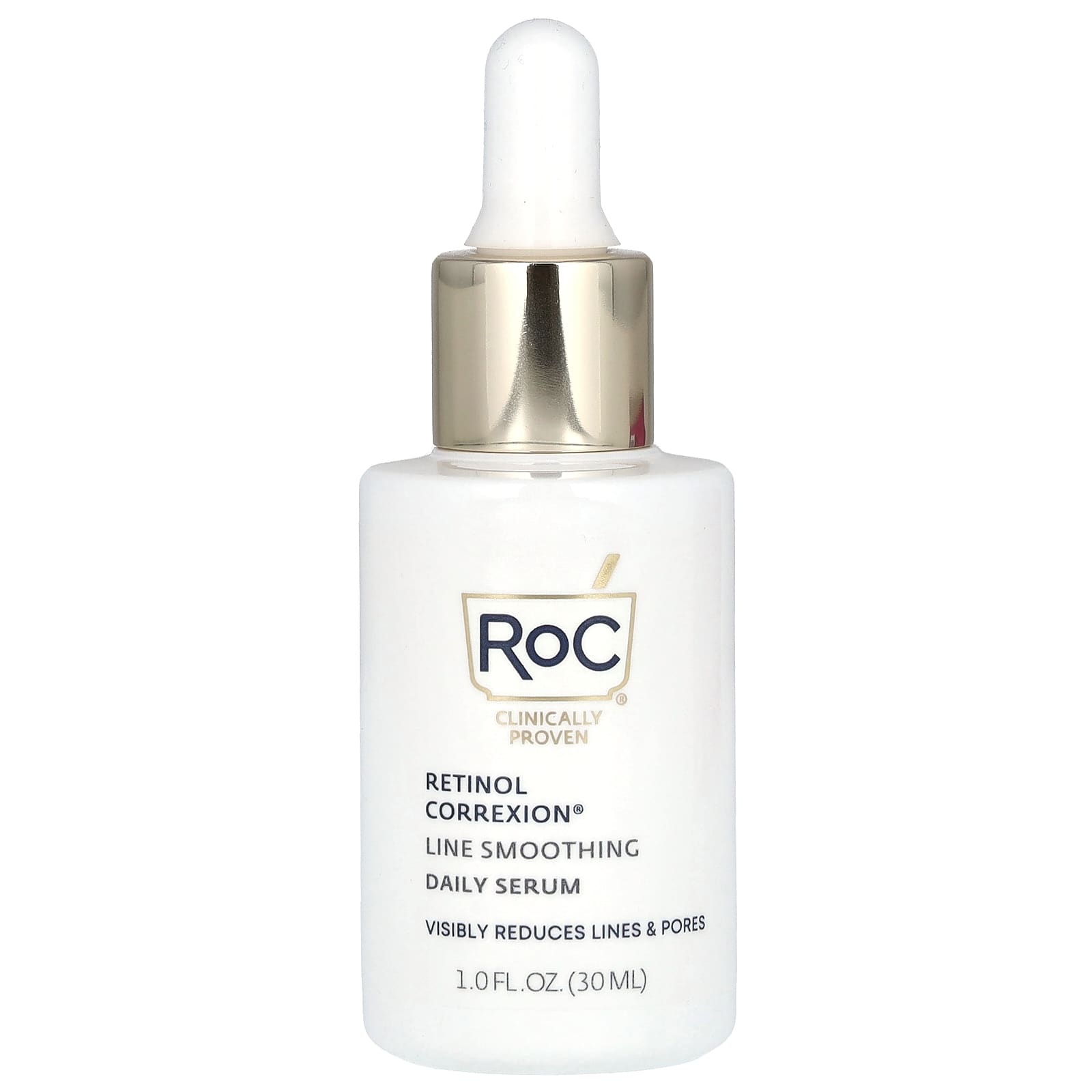 Ощутите 3 антивозрастных эффекта в одной улучшенной сыворотке. RoC® Retinol Correxion® Line Smoothing Daily Serum заметно разглаживает мелкие морщинки & разглаживает морщины, сужает поры и делает кожу более молодой и упругой. Эта мощная, но нежная формула содержит клинически проверенный ретинол RoC®, который успевает высвобождаться, чтобы оставаться активным на коже до 12 часов, улучшая ее сияние и разглаживая мелкие морщинки. Преобразите свою кожу с этой шелковистой, легкой сывороткой, которая легко впитывается в поверхностные слои кожи, обеспечивая максимальную эффективность. Протестировано дерматологами.