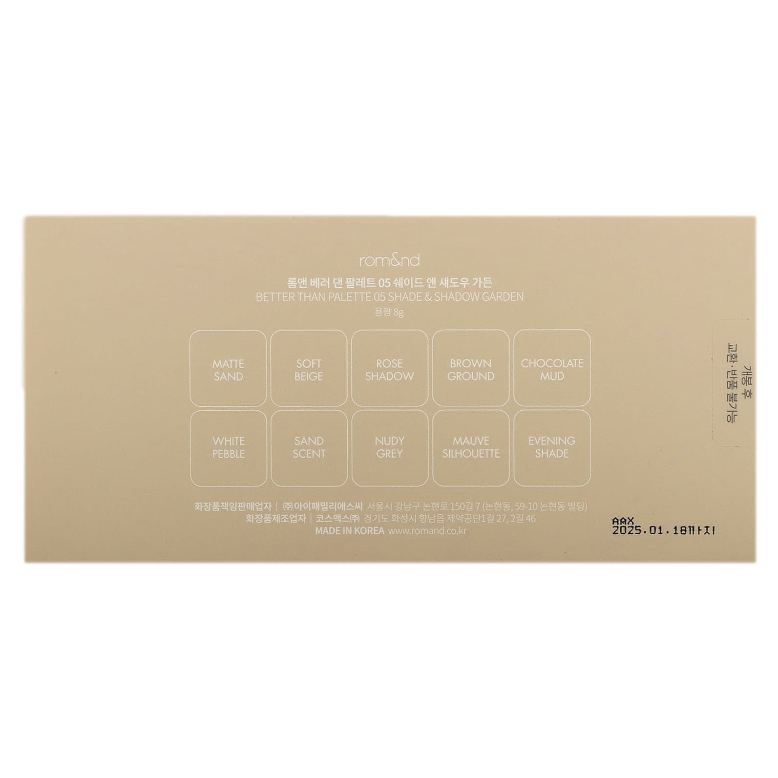 rom&nd, Better Than Palette, оттенок 05 и тени для сада, 8 г