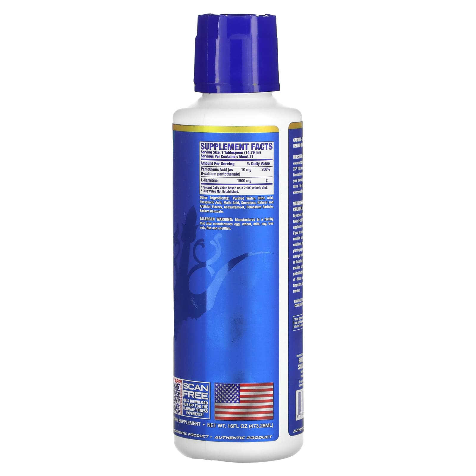 Чтобы приобретать и/или использовать этот продукт, лицам старше 18 лет Перед приемом L-CARNITINE XS™ 1500 или любых других пищевых добавок следует проконсультироваться с врачом, если вы не знаете о своем текущем состоянии здоровья, имеете какое-либо заболевание, принимаете какие-либо препараты, планируете какую-либо медицинскую процедуру. , беременных, кормящих или планирующих беременность. Уменьшите или прекратите использование при возникновении каких-либо побочных реакций, таких как раздражение желудочно-кишечного тракта.