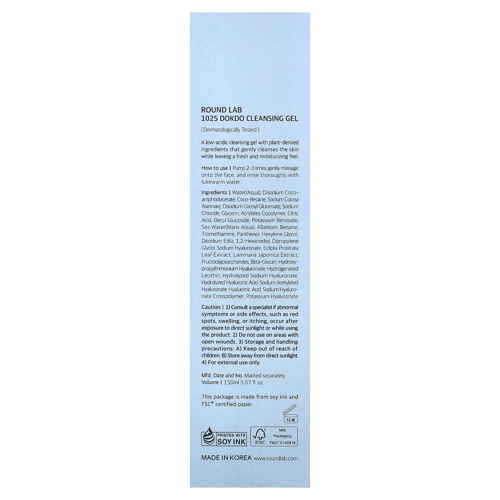 Вода, динатрия кокоамфодиацетат, коко-бетаин, натрия кокоил аланинат, двунатриевый кокоил глутамат, хлорид натрия, глицерин, сополимер акрилатов, лимонная кислота, децил глюкозид, бензоат калия, морская вода, аллантоин, бетаин, трометамин, пантенол, гексиленгликоль, двунатриевая ЭДТК, 1,2-гександиол, дипропиленгликоль, гиалуронат натрия, экстракт листьев эклипты простертой (Eclipta prostrata), экстракт ламинарии японской (Laminaria japonica), фруктоолигосахариды, бета-глюкан, гиалуронат гидроксипропилтримония, гидрогенизированный лецитин, гидролизованный гиалуронат натрия, гидролизованная гиалуроновая кислота, ацетилированный гиалуронат натрия, гиалуроновая кислота, кроссполимер гиалуроната натрия, гиалуронат калия.