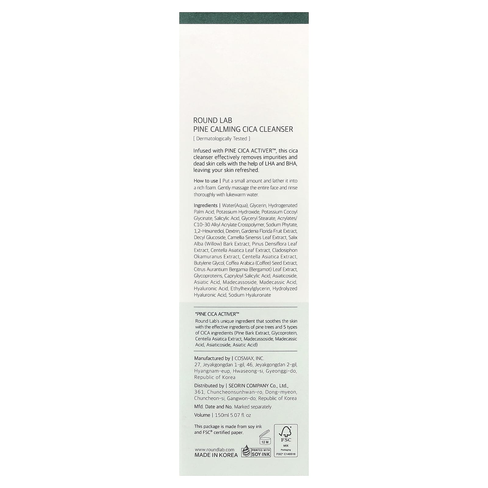 PINE CICA ACTIVER™ — уникальный ингредиент от Round Lab, который успокаивает кожу благодаря эффективным ингредиентам сосны и 5 типам ингредиентов CICA (экстракт сосновой коры, гликопротеин, экстракт готу колы (Centella asiatica), мадекассозид, мадекассовую кислоту, азиатикозид, азиатиковую кислоту).