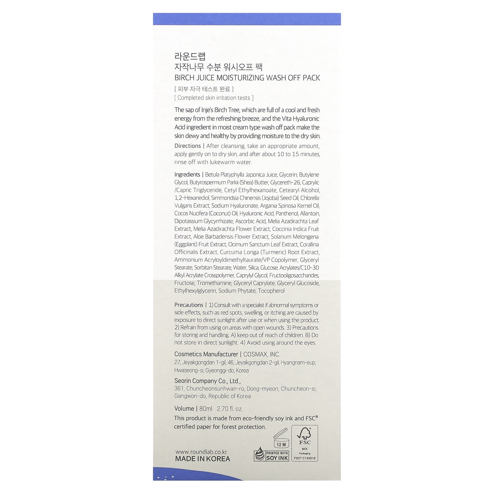 Сок берёзы плосколистой японской (Betula platyphylla japonica), глицерин, бутиленгликоль, масло ши (Butyrospermum parkii), глицерет-26, каприловый/каприновый триглицерид, цетилэтилгексаноат, цетеариловый спирт, 1,2-гександиол, масло из семян жожоба (Simmondsia chinensis), экстракт хлореллы (Chlorella vulgaris), гиалуронат натрия, аргановое масло (Argania spinosa), кокосовое масло (Cocos nucifera), гиалуроновая кислота, пантенол, аллантоин, дикалия глицирризат, аскорбиновая кислота, экстракт листьев дерева ним (Melia azadirachta), экстракт цветков дерева ним (Melia azadirachta), экстракт плодов кокцинии индийской (Coccina indica), экстракт цветков алоэ вера (Aloe barbadensis), экстракт плодов баклажана (Solanum melongena), экстракт листьев туласи (Ocimum sanctum), экстракт кораллины целебной (Corallina officinalis), экстракт корня куркумы (Curcuma longa), аммоний акрилоилдиметилтаурат/ВП сополимер, глицерил стеарат, сорбитан стеарат, вода, диоксид кремния, глюкоза, акрилат/c10-30 алкил акрилат кроссполимер, каприлилгликоль, фруктоолигосахариды, фруктоза, трометамин, глицерил каприлат, глицерил глюкозид, этилгексилглицерин, фитат натрия, токоферол.