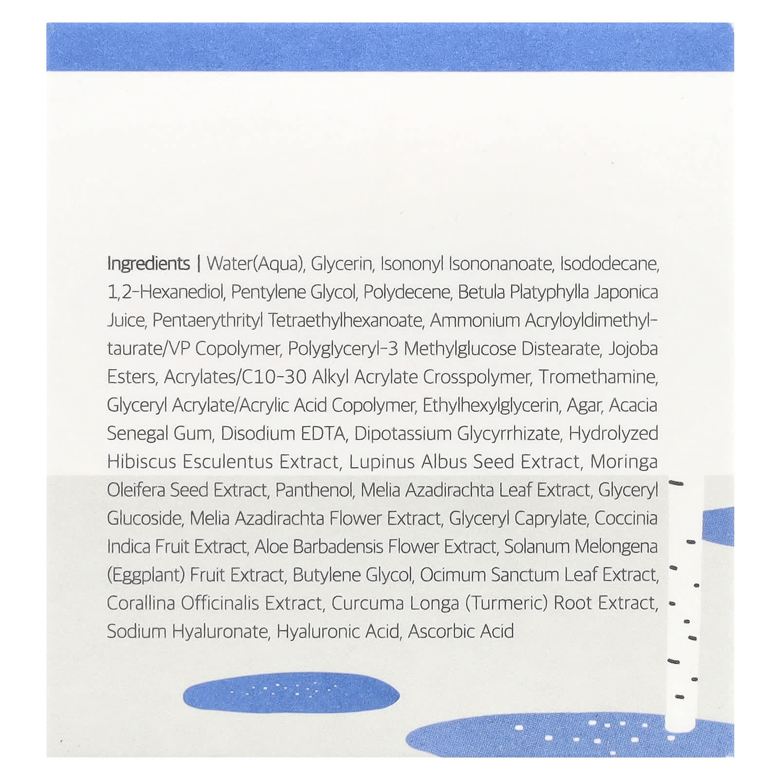 Вода, глицерин, изононил изононаноат, изододекан, 1,2-гександиол, пентилен гликоль, полидецен, сок Betula platyphylla japonica, пентаэритритил тетраэтилгексаноат, аммоний акрилоилдиметилтаурат/ВП сополимер, полиглицерил-3 метилглюкозы дистеарат, эфиры жожоба, акрилат/c10-30 алкил акрилат кроссполимер, трометамин, сополимер глицерил акрилата/акриловой кислоты, этилгексилглицерин, агар, смола сенегальской акации (Acacia senegal), двунатриевая ЭДТК, дикалия глицирризат, гидролизованный экстракт гибискуса (Hibiscus esculentus), экстракт семян люпина белого (Lupinus albus), экстракт семян моринги (Moringa oleifera), пантенол, экстракт листьев дерева ним (Melia azadirachta), глицерил глюкозид, экстракт цветков дерева ним (Melia azadirachta), глицерил каприлат, экстракт плодов кокцинии индийской (Coccina indica), экстракт цветков алоэ вера (Aloe barbadensis), экстракт плодов баклажана (Solanum melongena), бутиленгликоль, экстракт листьев священного (Ocimum sanctum), экстракт кораллины лекарственной (Corallina officinalis), экстракт корня куркумы (Curcuma longa), гиалуронат натрия, гиалуроновая кислота, аскорбиновая кислота.