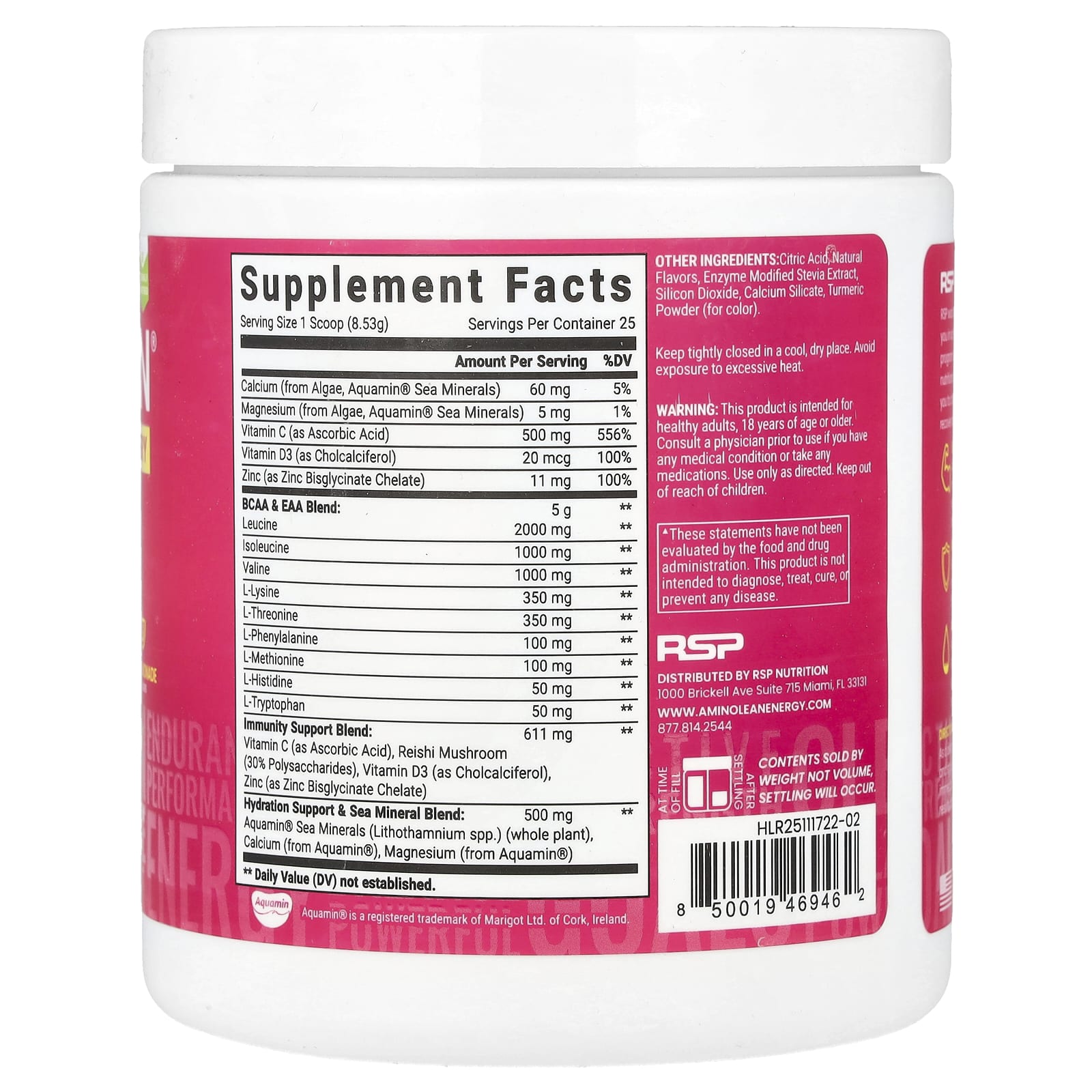 | Поддержка гидратации и смесь морских минералов: Aquamin® Sea Minerals (виды Lithothamnium) (целое растение), кальций (из Aquamin®), магний (из Aquamin®) | 500 мг | ** |