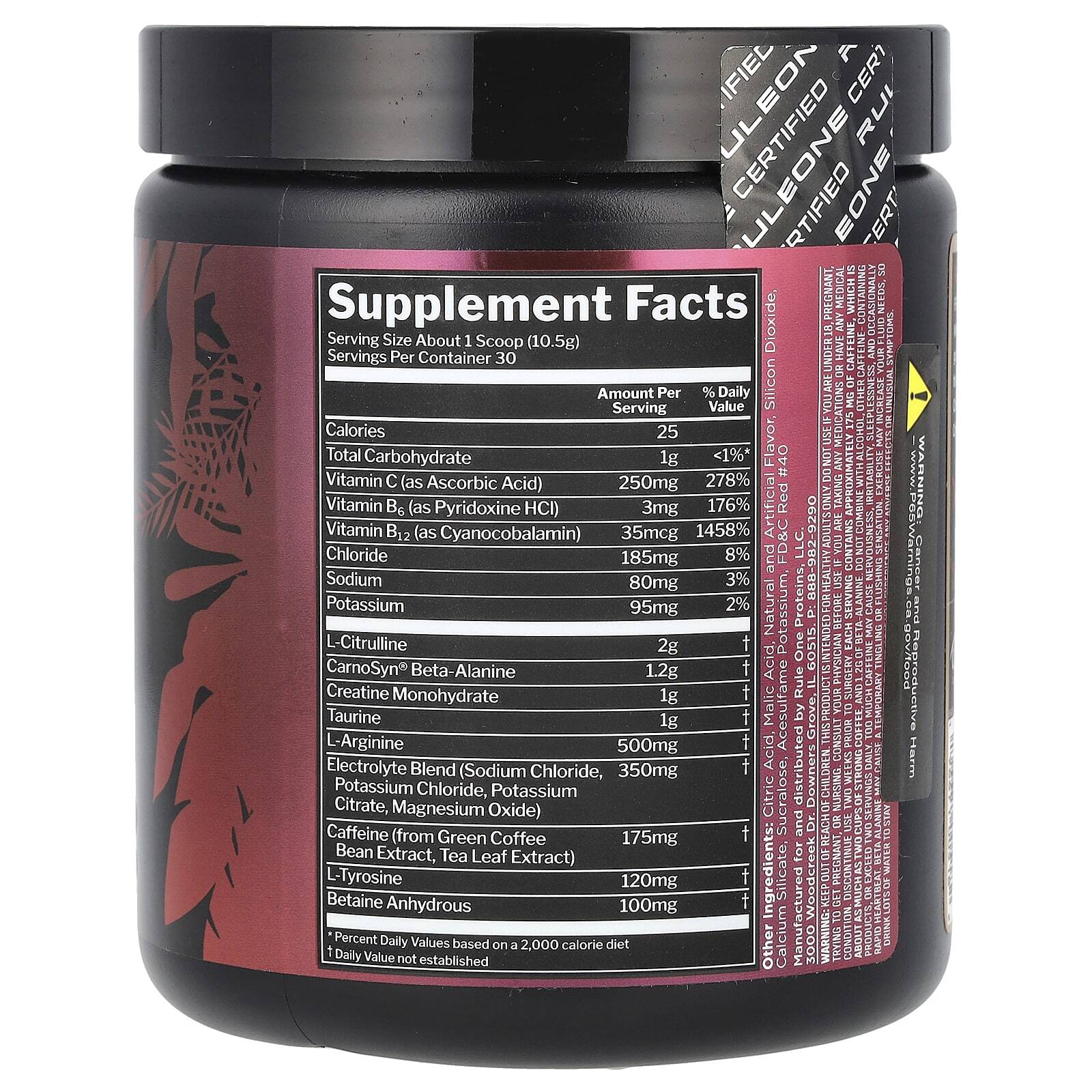 Хранить в недоступном для детей месте. Этот продукт предназначен только для здоровых взрослых. Не следует использовать данный продукт лицам младше 18 лет, во время беременности, при планировании беременности или кормлении грудью. Проконсультируйтесь с врачом перед использованием, если вы принимаете какие-либо препараты или страдаете каким-либо заболеванием. Прием следует прекратить за две недели до планируемой хирургической операции. Каждая порция содержит приблизительно 175 мг кофеина (что эквивалентно двум чашкам крепкого кофе) и 1,2 г бета-аланина. Не сочетайте с алкоголем, другими продуктами, содержащими кофеин, и не превышайте две порции в день. Слишком большое количество кофеина может вызвать нервозность, раздражительность, бессонницу и иногда учащенное сердцебиение. бета-аланин может вызывать временное покалывание или покраснение. Упражнения могут увеличить потребность в жидкости, поэтому пейте много воды, чтобы избежать водного баланса. При возникновении побочных или необычных симптомов следует прекратить использование.