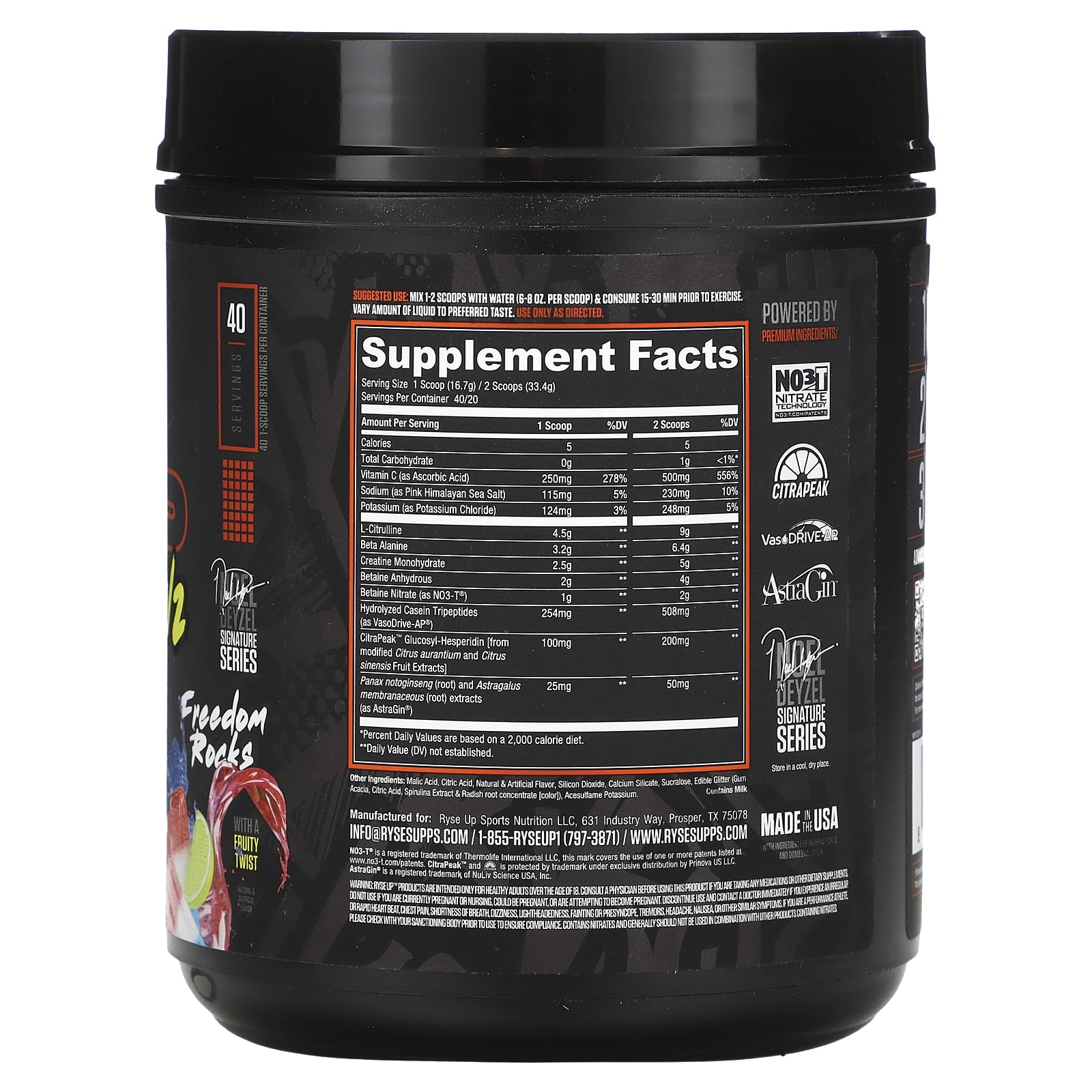 Продукты Ryse Up™ предназначены только для здоровых взрослых людей старше 18 лет. Проконсультируйтесь с врачом перед использованием этого продукта, если вы принимаете какие-либо лекарства или пищевые добавки. Не следует принимать данный продукт, если вы беременны, кормите грудью, планируете беременность или планируете беременность. Прекратите использование и немедленно обратитесь к врачу, если у вас возникли нерегулярное или учащенное сердцебиение, боль в груди, одышка, головокружение, тремор, головная боль, тошнота или другие подобные симптомы. Если вы — высокоэффективный спортсмен. Перед использованием проконсультируйтесь с санкционирующим органом, чтобы убедиться, что продукт не содержит нитратов. Как правило, его не следует использовать в сочетании с другими продуктами, содержащими нитраты.