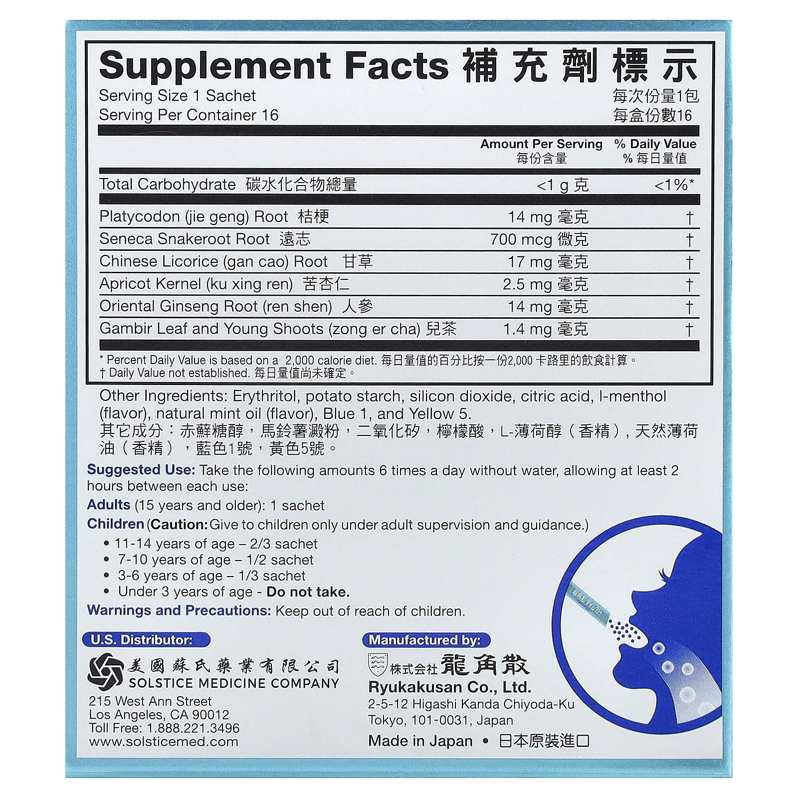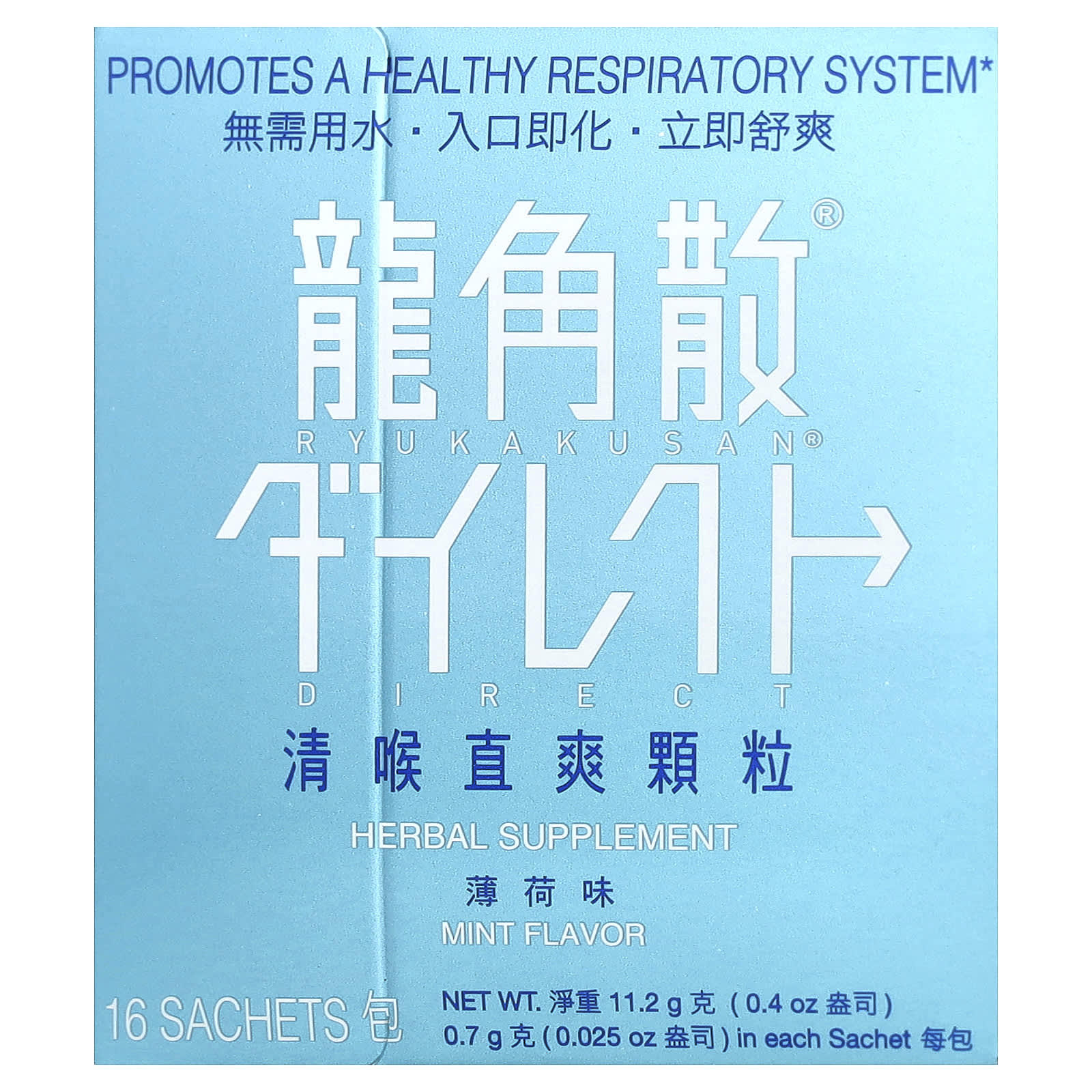 Травяная добавка со вкусом мяты Ryukakusan direct - это пищевая добавка в гранулированной форме, которую следует принимать без воды. Мгновенно растворяется во рту. Его можно использовать где угодно и когда угодно. Один пакетик идеально подходит для использования одним взрослым, но продукт может принимать каждый, начиная с трехлетнего возраста (см. Раздел «Рекомендации по применению»).