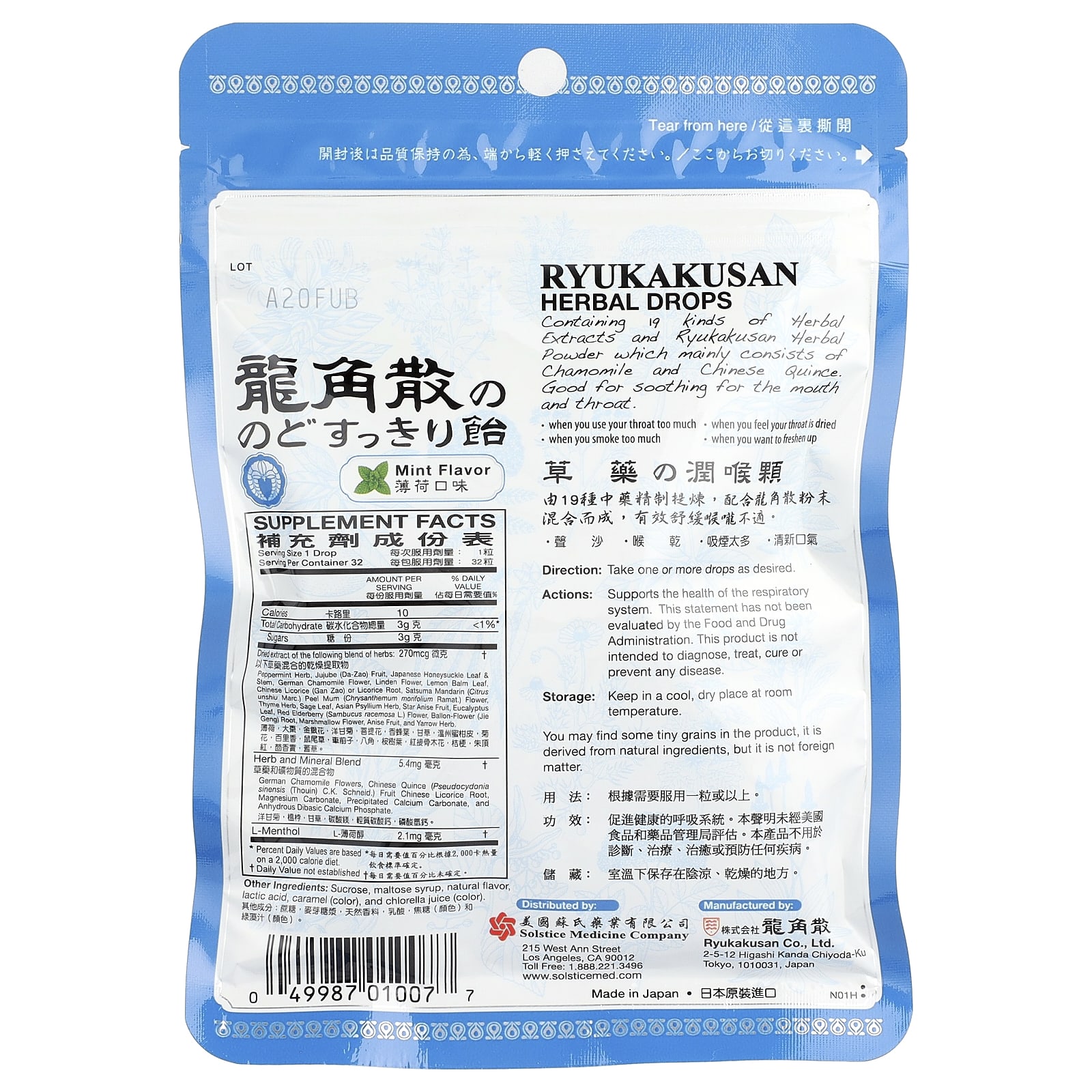 Содержит 19 видов травяных экстрактов и травяной порошок рюкакусан, который в основном состоит из ромашки и китайской айвы. Успокаивает полость рта и горло.