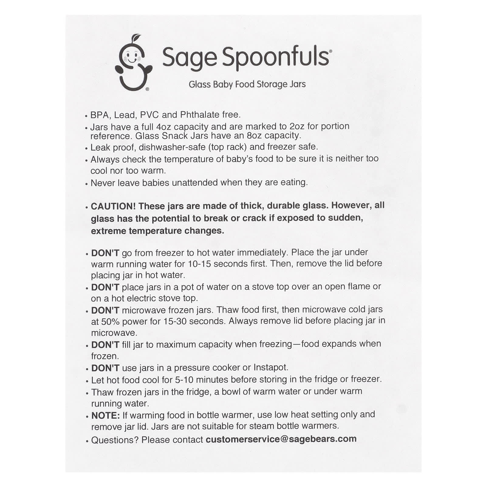 Стеклянный набор для хранения детского питания от Sage Spoonfuls состоит из 6 многоразовых стеклянных банок по 4 унции - всего 24 унции! Эти стеклянные банки идеально подходят для хранения, подачи и разогрева домашнего детского питания и полезных перекусов.