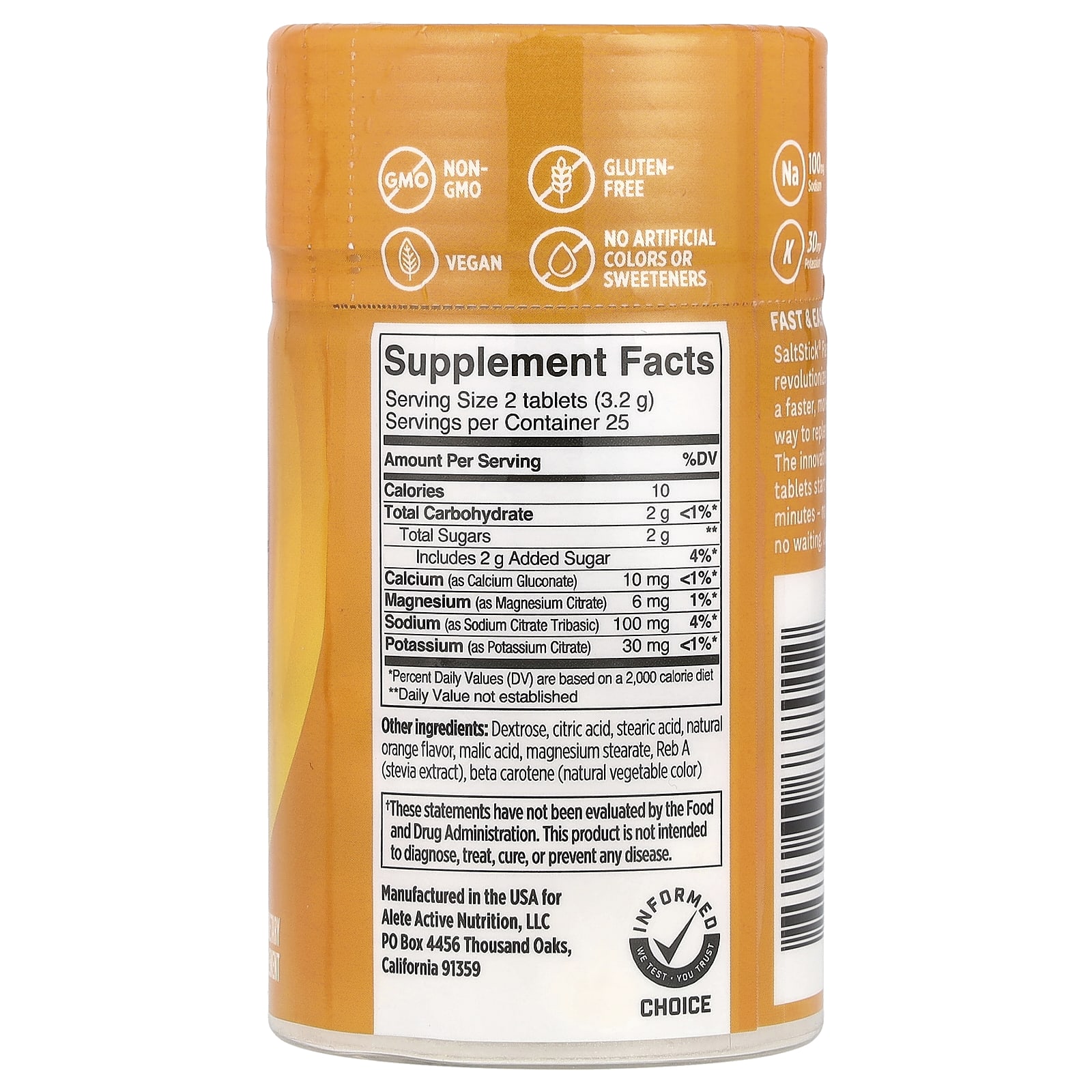 Декстроза, лимонная кислота, стеариновая кислота, натуральный ароматизатор «Апельсин», яблочная кислота, стеарат магния, реб А (экстракт стевии), бета-каротин (натуральный растительный краситель).
