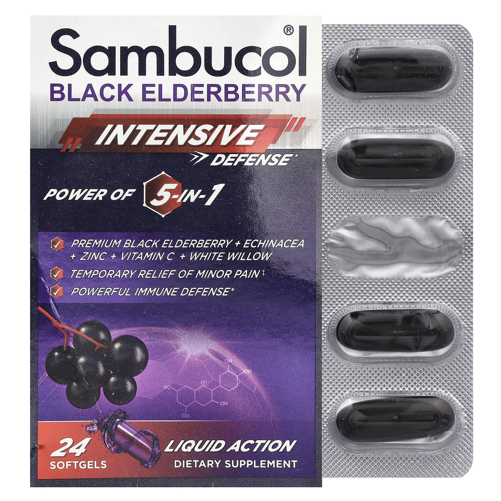 Капсулы Sambucol 5-in-1 Intense Defense Liquid-Action объединяют 5 эффективных активных ингредиентов в одну комплексную смесь. Он обеспечивает интенсивную поддержку иммунитета, когда вам это нужно больше всего.