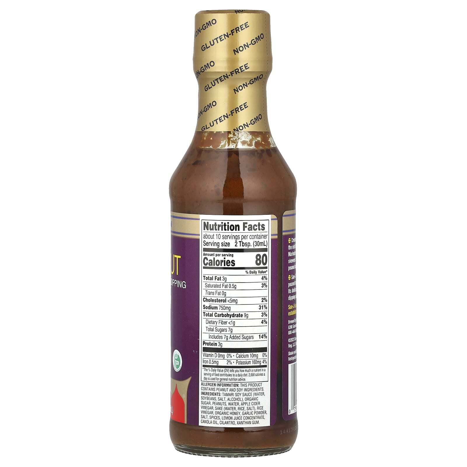 Соевый соус тамари (вода, сою, соль, спирт), органический сахар, арахиса, вода, яблочный уксус, саке (вода, рис, соль), рисовый уксус, органический мед, чесночный порошок, соль, специи, концентрат лимонного сока, рапсовое масло, кинза, ксантановая камедь.