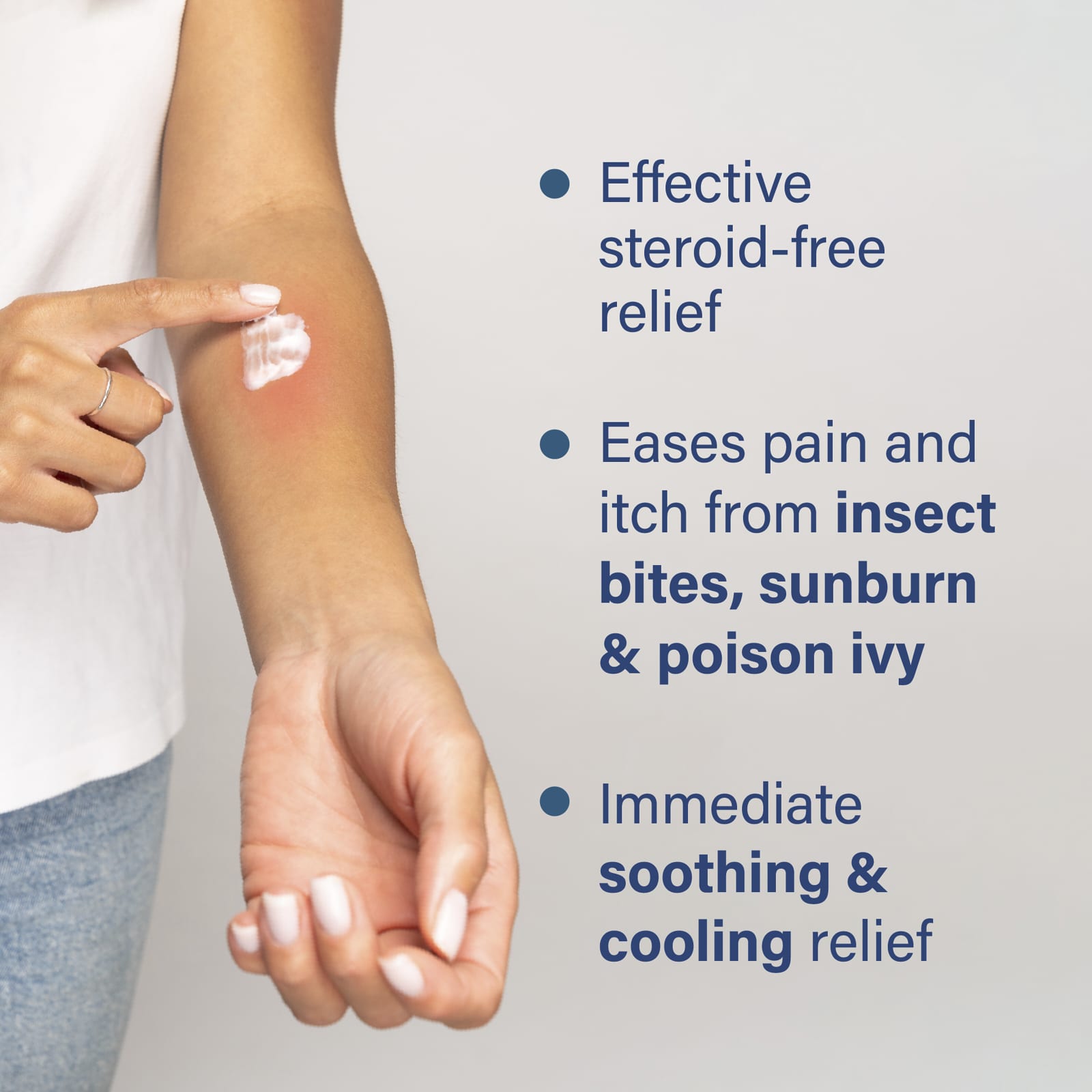 - Облегчает боль и зуд, связанные с укусами насекомых, солнечными ожогами и ядовитым плющом