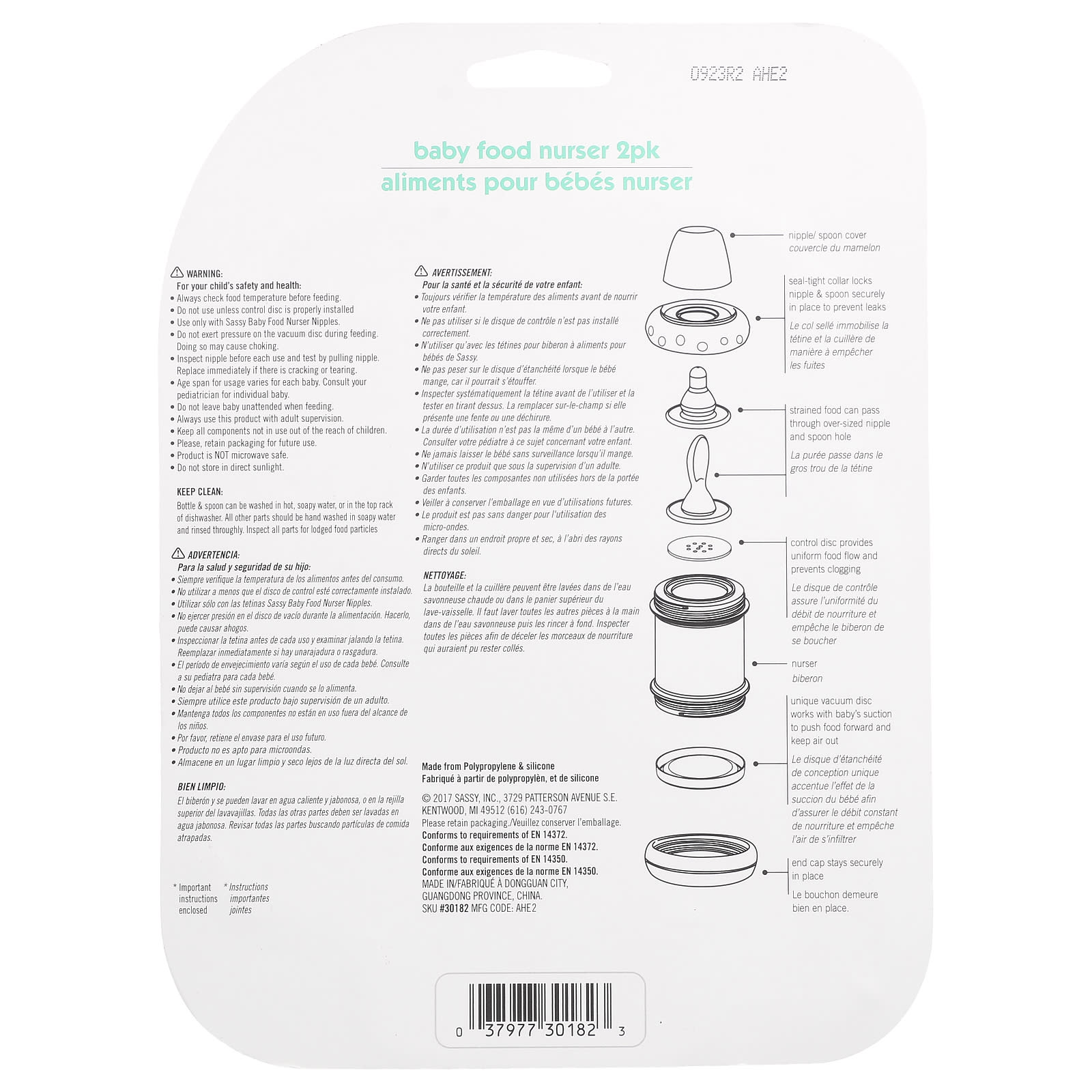 - Используйте только с сосками для кормления грудью Sassy Baby Food.