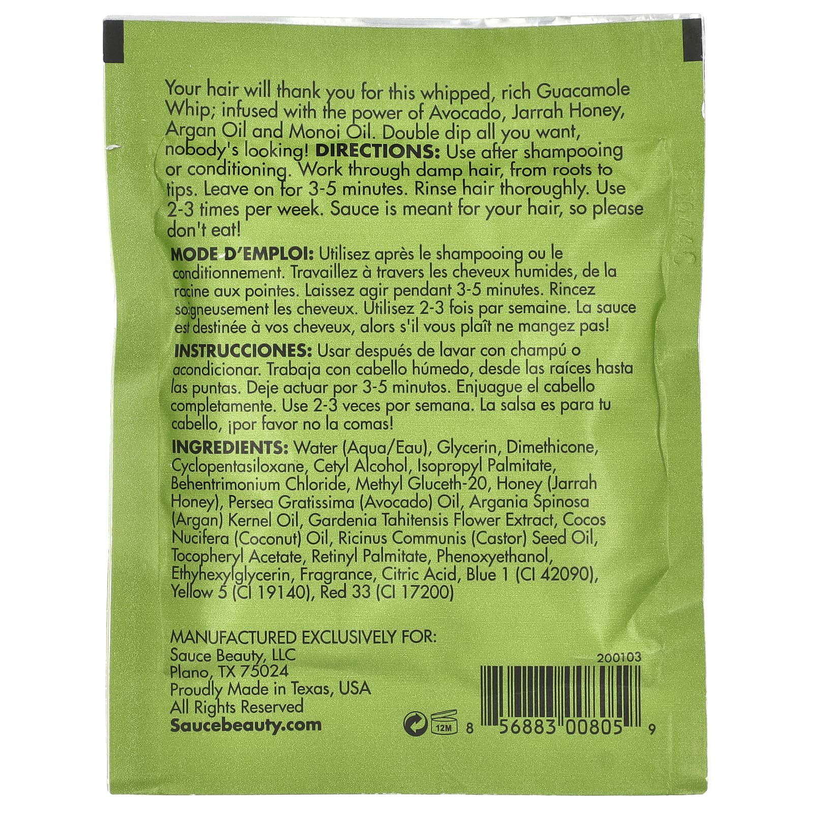 Ваши волосы будут благодарить вас за этот насыщенный взбитый венчик из гуакамоле. Сила авокадо, меда из джарры, арганового масла и масла монои. Двойное погружение сколько угодно, никто не смотрит!