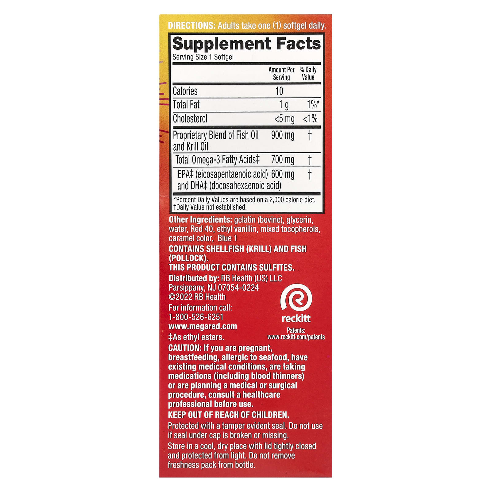 Рыбий жир MegaRed Advanced 4in1 содержит в 2 раза больше омега-3 жирных кислот, чем обычный рыбий жир.