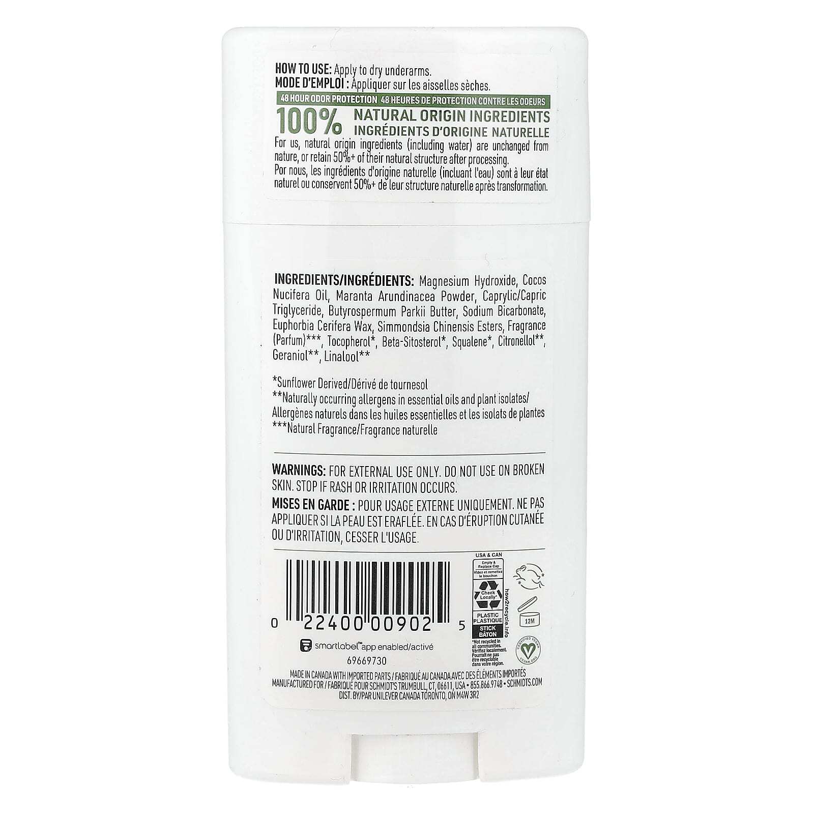 Гидроксид магния, кокосовое масло (Cocos nucifera), порошок маранты (Maranta arundinacea), каприловый / каприновый триглицерид (фракционированное кокосовое масло), масло ши (Butyrospermum parkii), бикарбонат натрия (пищевая сода), канделильский воск (Euphorbia cerifera), эфиры жожоба (Simmondsia chinensis), парфюмерная композиция (натуральный ароматизатор), токоферол (витамин E из подсолнечника), бета-ситостерол, сквален.