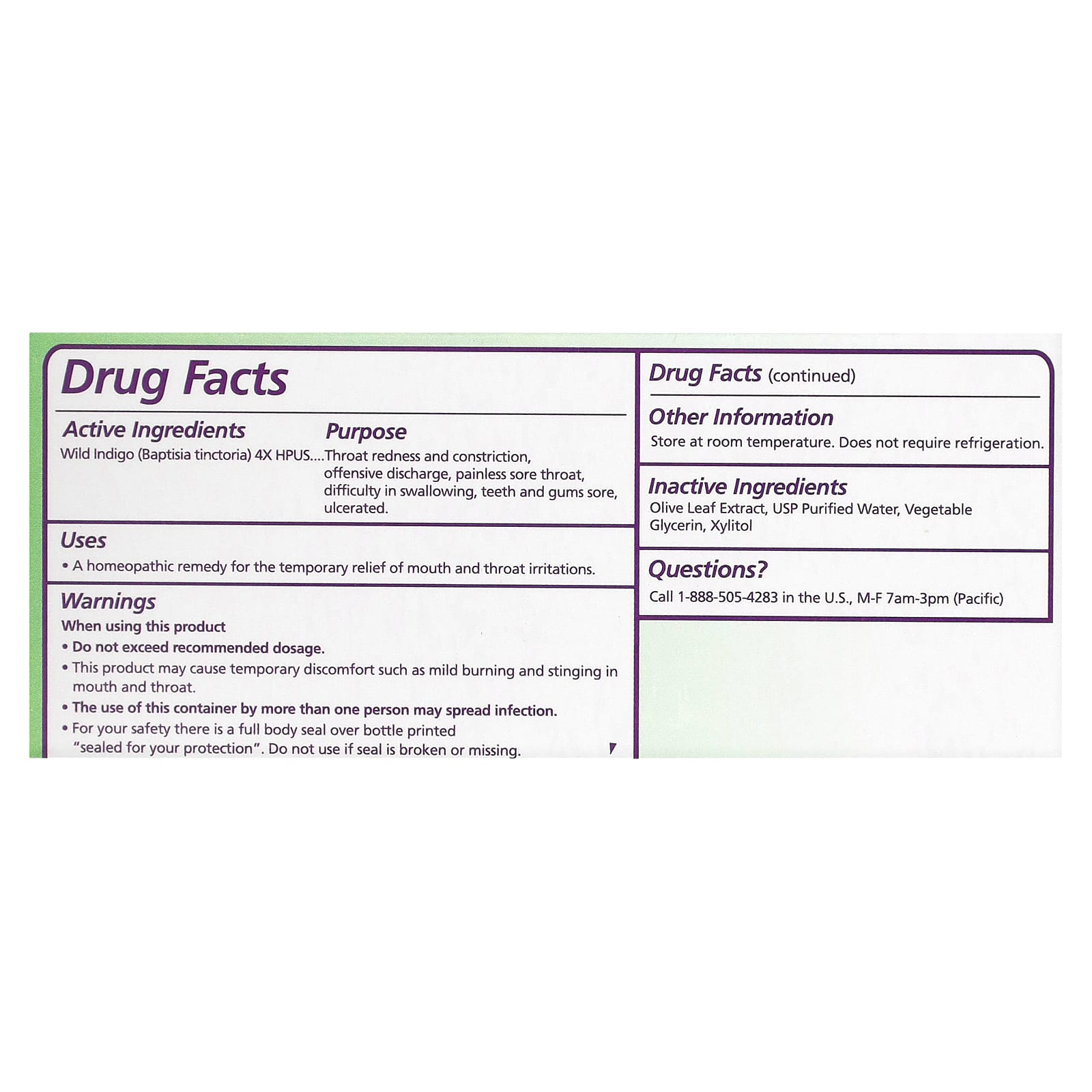 Неактивные ингредиенты: экстракт оливкового листа, очищенная вода USP, растительный глицерин, ксилит.