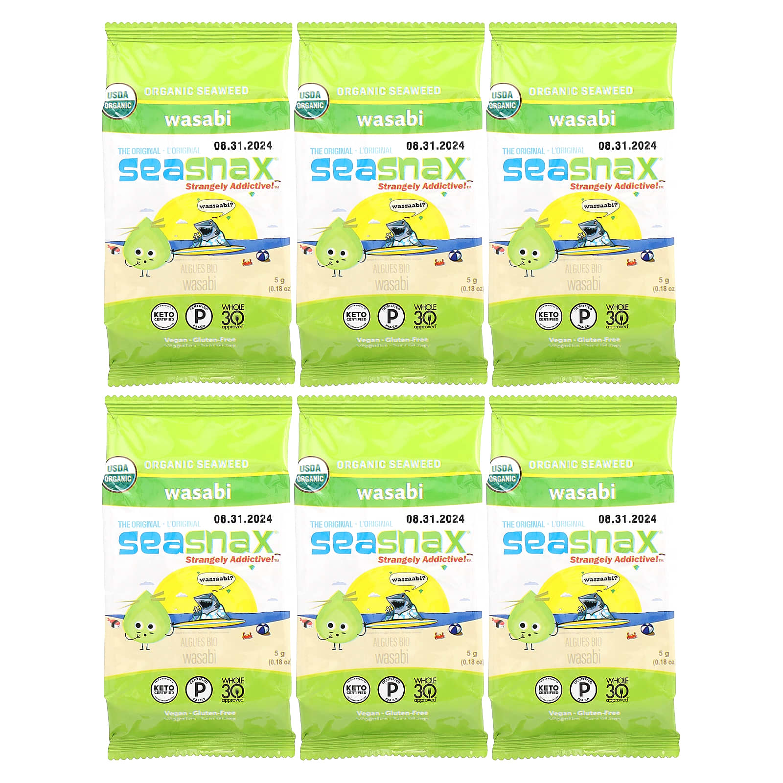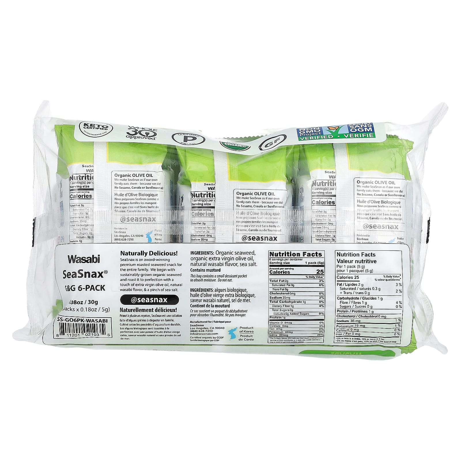 Органические водоросли, органическое нерафинированное оливковое масло высшего качества, натуральный ароматизатор «Васаби», морская соль.