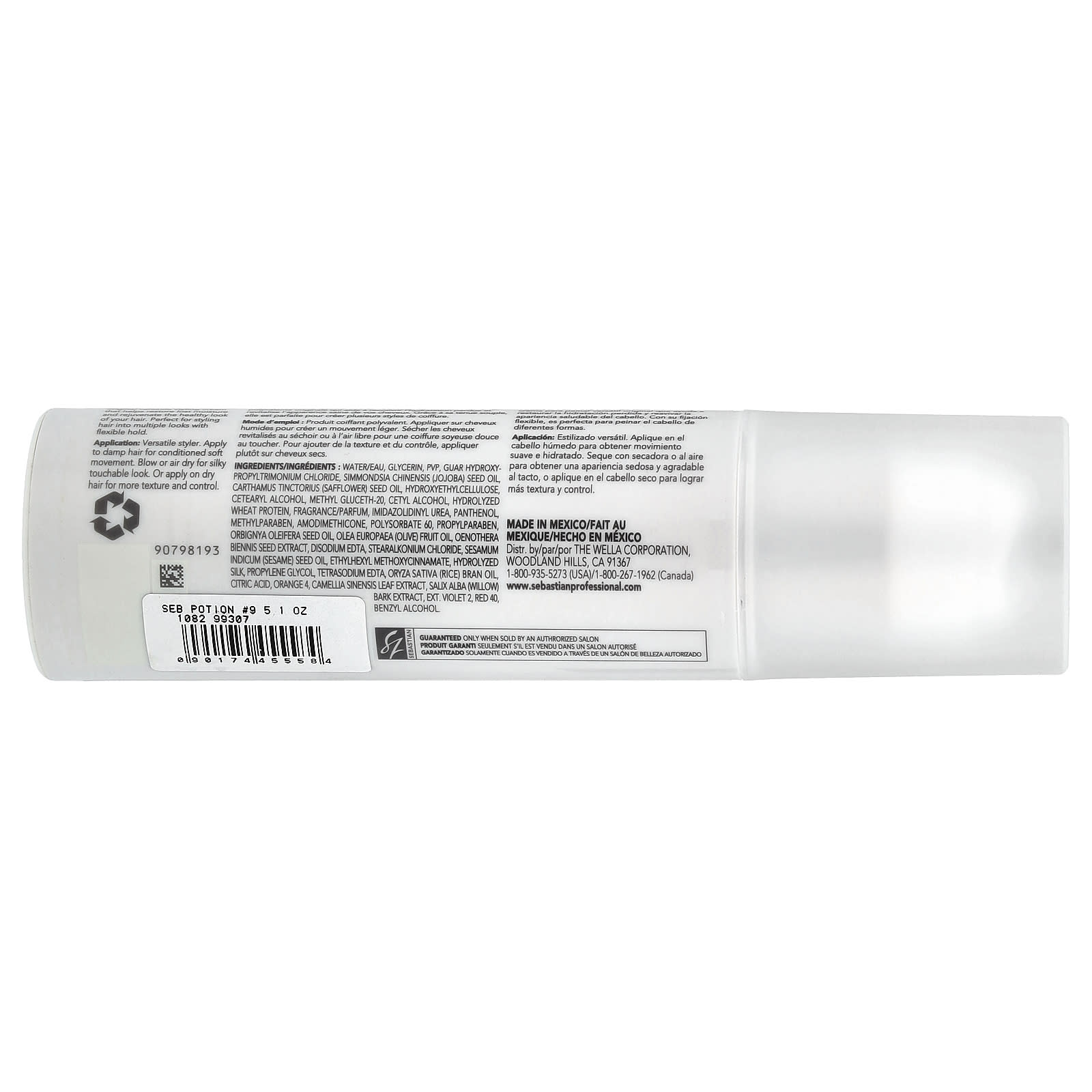 Вода, глицерин, ПВП, гуар гидроксипропилтримония хлорид, масло из семян жожоба (Simmondsia chinensis), масло семян сафлора (Carthamus tinctorius), гидроксиэтилцеллюлоза, цетеариловый спирт, метил глюцет-20, цетиловый спирт, гидролизованный протеин из пшеницы, отдушка (парфюмерная композиция), имидазолидинилмочевина, пантенол, метилпарабен, амодиметикон, полисорбат 60, пропилпарабен, масло из семян бабассу (Orbignya oleifera), оливковое масло (Olea europaea), экстракт семян японской петрушки (Oenothera biennis), двунатриевая ЭДТК, хлорид стеаралкония, кунжутное масло (Sesamum indicum), этилгексил метоксициннамат, гидролизованный шелк, пропиленгликоль, тетранатрия ЭДТК, масло из рисовых отрубей (Oryza sativa), лимонная кислота, краситель оранжевый 4, экстракт листьев зелёного чая (Camellia sinensis), экстракт коры ивы (Salix alba), краситель фиолетовый 2, краситель красный 40, бензиловый спирт.